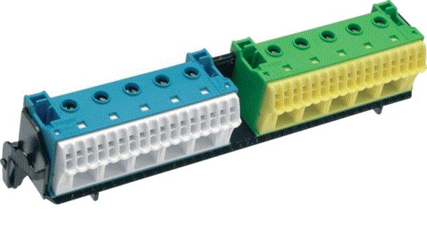 Hallo, in meinem Haus aus Mitte der 80er möchte ich die Elektroinstallation erneuern. Mittlerweile habe ich auch schon alle Komponenten zusammen, außer Klemmblöcke für N und PE. Von Hager gibt es diese schönen Träger, die man je nach Bedarf mit Klemmblöcken ausstatten kann. Leider verwenden die eine Hager-spezifische Schnappklemmung, die mein Verteilerschrank noch nicht hat. Bei mir ist lediglich links und rechts eine Schraubleiste, auf die Zubehör verschraubt werden kann (z. B. Hutschienen). Ich kenne die horizontalen Sammelklemmen von Pollmann, würde jedoch etwas in der Art wie das von Hager bevorzugen. Ich kenne von Hager auch den Adapter KN00A, der auf die Hutschiene geklemmt wird und auf den ebenfalls die Blöcke gesteckt werden können. Sofern ich nichts besseres finde, werde ich so einen nehmen. Meine Frage ist aber, gibt es für dieses Runde Stecksystem (auf dem Foto meines Zählerschranks oben) ein Äquivalent, auf das solche Klemmblöcke geschraubt werden können? Dann bräuchteich mir keine Hutschiene zu schnitzen.