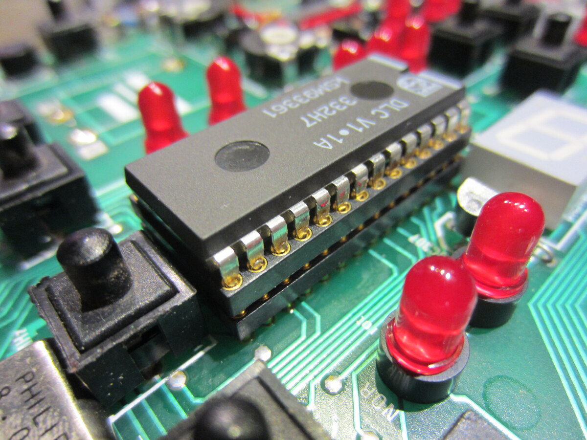 Prozessor ist wahrscheinlich ein MAB8021 (MCS-48). Sowas zu programmieren will man sich heute nicht mehr antun. Zitat aus https://www.mattmillman.com/projects/an-intel-mcs-48-based-dual-temperature-sensor/ : "As I worked my way through the implementation, I kept telling myself it would get easier. It didn’t." Von ELV gab es übrigens etwas ganz ähnliches, vermutlich ebenfalls mit MCS-48 Controller (8748), nannte sich Digital Light Processor DLP1001, DLP1002 oder DLP2000 und erschien im ELV-Journal #54 im Jahr 1987.