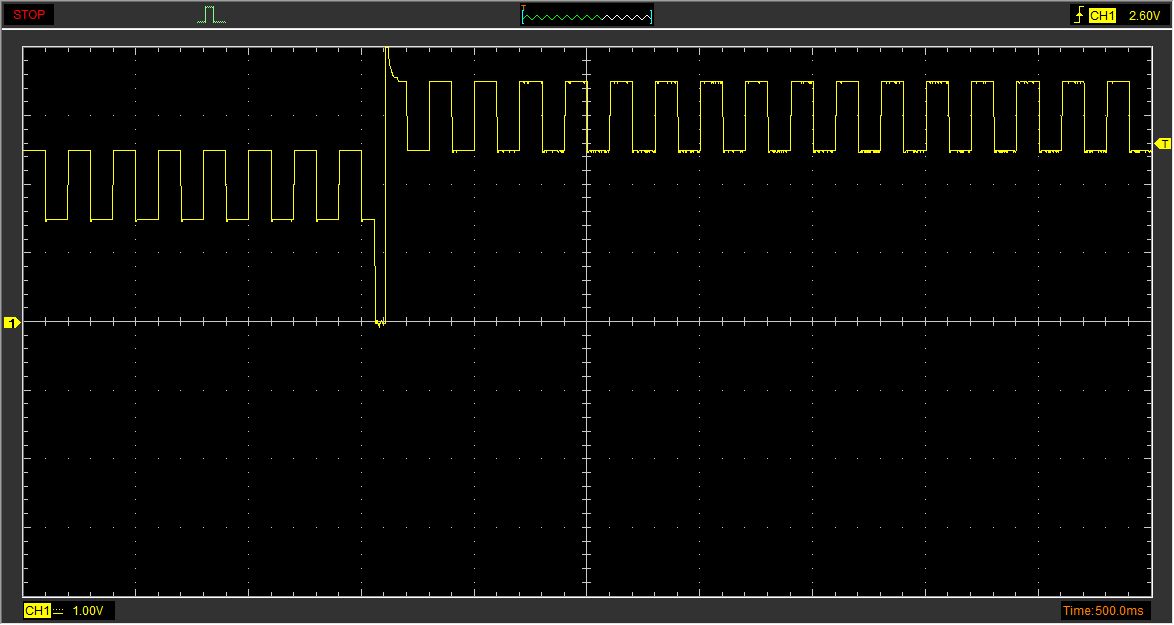 Hallo, wer kennt sich mit der Programmierung von FGs der Marke RIGOL (DG1000Z-Serie) aus? Vermutlich ist mein Gerät DG1032Z nicht defekt (s. Diagramme) aber ich habe wahrscheinlich eine konstruktionsbedingte Schwachstelle aufgedeckt! Die Erzeugung eines treppenförmigen Spannungssignals durch die Arbitrary-Funktion 'DC' mit dem Befehl ':SOUR1:APPL:DC 1,1,X'verläuft problemlos (Diagramme)! X steht für die jeweilige Gleichspannung in Volt / auch als Offset bezeichnet!, die beiden Einser werden nicht berücksichtigt, müssen jedoch dort stehen! Zu meiner Überraschung sind Spannungsspitzen (Diagramme) zu erkennen! Und zwar immer wenn im oben genannten Befehl bei X die 2(2V!) durchlaufen wird! Dann macht es 'Klick' im DG1032z (internes Relais)! Hat jemand eine Idee wie ich mein Vorhaben anderes angehen kann? Ich brauche beliebige Gleichspannungen zwischen 0V und 5V im gleichen Prozess! Also der FG sollte in diesem Prozess kein 'Klick' machen! TK