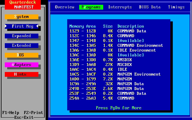 Cartman E. schrieb: > Von Bootware gibt es eine Software: mapgen, die das schon ewig > unter Good-Old-Vanilla-Plain-DOS auch kann. Und wieviel vom unter DOS notorisch und immer zu wenigem Speicher bleibt dann noch übrig, wenn da ein Image gemountet ist?