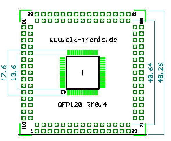Hallo Pontonfrog und/oder Franz, das ist einfach ein bisschen dumm gelaufen. Ich bin schon länger nicht im Forum gewesen und hatte deshalb keinen Account. Früher wurde gleich die email-Adresse mit angezeigt. Da hättet ihr sofort meinen Shop gefunden (www.elk-tronic.de). Aber egal, anbei ein Bild von meinem Vorschlag für einen QFP120 Adapter. Franz, ich klaue generell keine Layouts. Ich benutze nicht mal fremde Macros, da ich meinen eigenen Stil pflege. Und beim nächsten Mal vielleicht nicht gleich dummer Schweinehund sagen. Bis dann, Michael