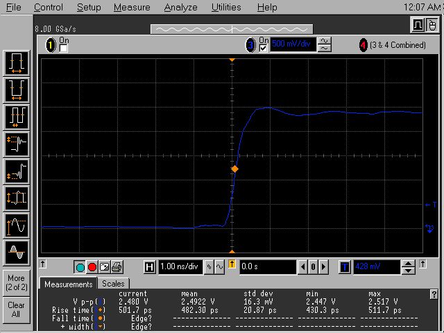 Thomas D. schrieb: > Pulse mit tr, tf von ca. 2 ns, tp ca. 4..5 ns Wie ist denn die Anstiegszeit vom Aufzeichnungsgerät? Könnte es sein, dass der Puls deutlich steiler ist? LT hatte ja 0,35ns gemessen.