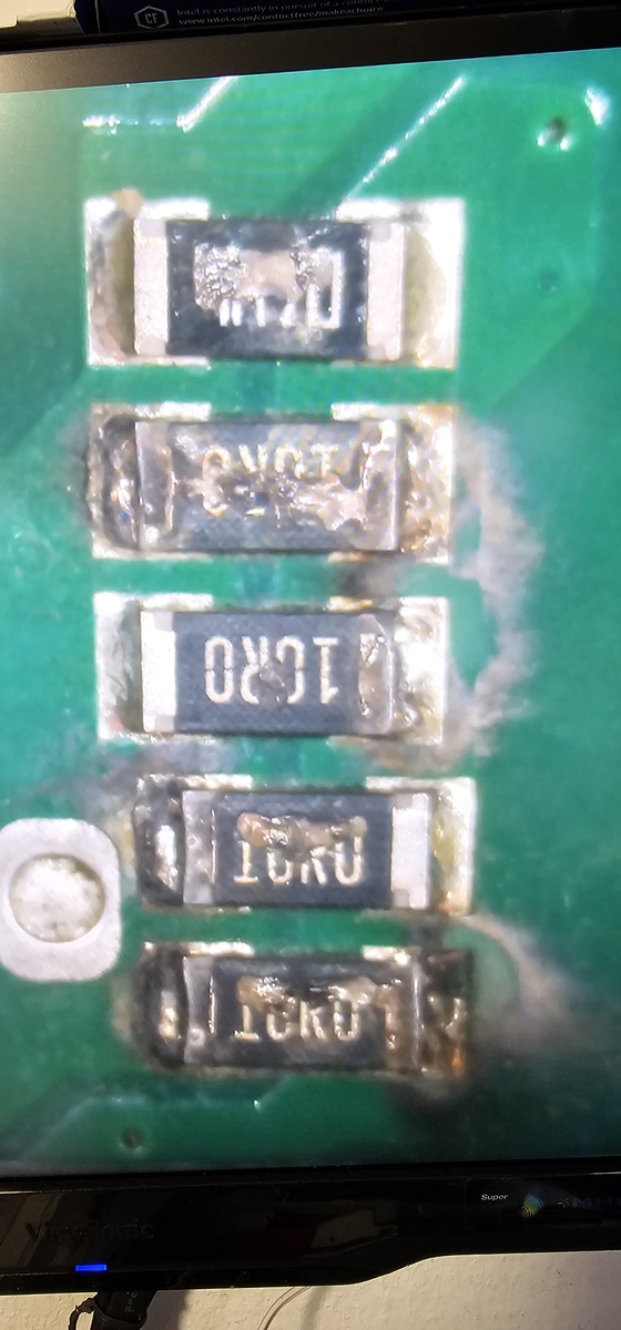 Bin grade nicht am Platz, aber das hier ist ein Link zu der Platine. https://img.kleinanzeigen.de/api/v1/prod-ads/images/15/1597a7b8-592b-4222-958b-98192bcdb8eb?rule=$_57.AUTO Wird aber bald wohl nicht mehr verfügbar sein (als info für die späteren Leser). Oberhalb ist ein Mosfet (auf dem Linkbild unterhalb) - der war komplett auf Kurzschluss. Die Widerstände sind auf diesem Bild zwischen den 2 Spulen zu sehen.