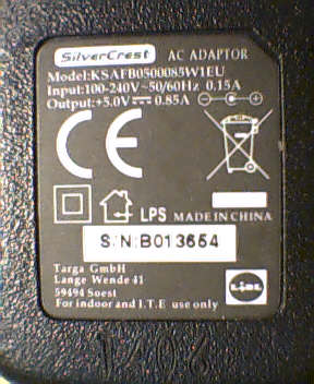 dieses Steckernetzteil (Bild) war bei meinem Bluetooth Headset von Lidl dabei. Das Headset habe ich inwischen weggeworfen, vom Netzteil bin ich begeistert, ich hätte mehr kaufen sollen. Es liefert genau 5V und max 0,8A. Ich habe es mit 200mA gemessen. Die Spannung ist dabei sehr sauber (3mV 66kHz). Dabei ist es nur 50x30x20mm groß und wiegt so gut wie nix. Kann man sowas irgendwo einzeln kaufen?