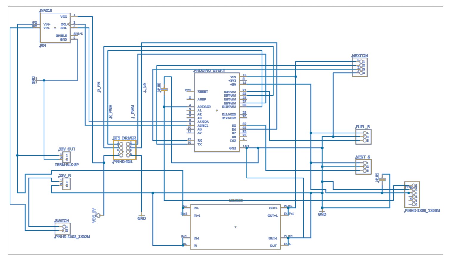 Lothar M. schrieb: > Wenn du im Schaltplan den Header BTS_DRIVER z.B. einfach rechts vom > Arduino platzierst, dann musst du nicht mit den 4 Leitungen einmal quer > um den Arduino fahren. Ich hab das für den TO mal eben etwas umgestellt und einen offensichtlichen Fehler behoben: Im Schaltplan des TO - und scheinbar auch im Layout - ist das Label "VCC_5V" nur mit dem INA219 und dem "BTS_DRIVER"-Stecker verbunden, jedoch nicht mit dem 5V-Ausgang des Arduinos.