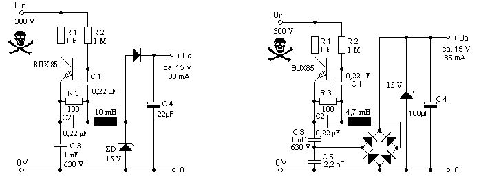 >> Kondensatornetzteil > aus DC? Aha... Meistens wird die Schaltung ja irgendwie aus dem Netz versorgt. > 400Vdc 230Vac durch Brückengleichrichter sind etwa 340Vdc. > 600Vdc 400Vac durch Brückengleichrichter sind etwa 565Vdc. Nach einer PFC-Stufe wird aus beidem noch etwas mehr.