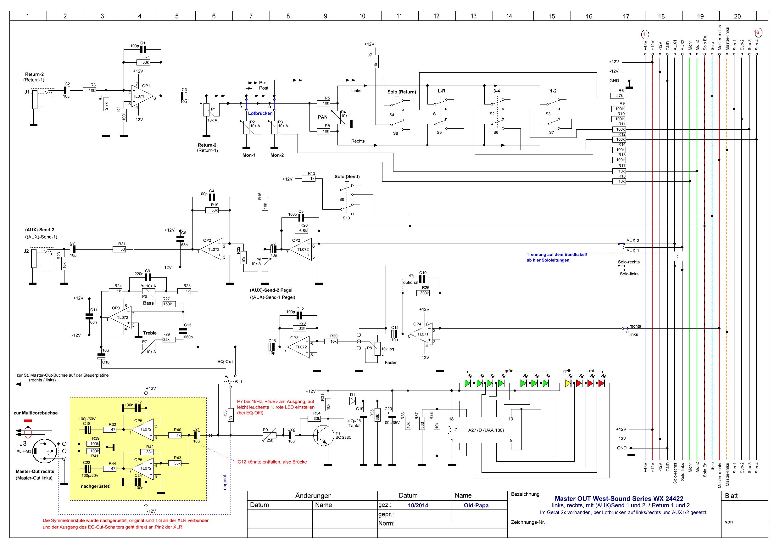 Dirk schrieb: > Ich habe mal zwei aktuelle und hoffentlich besser geeignete Fotos > beigefügt, welche ich im ausgebauten Zustand gemacht habe. Die anderen > waren etwas schief, weil die Platine da noch an den Leitungen hing. > Hilft das, das noch besser zu generieren? Bitte die Fotos mit > Unterstrich im Namen verwenden, da habe ich die Leiterbahnsicht schon > gespiegelt und den Haken bei "Bild automatisch verkleinern, falls nötig" > weggenommen. Also mal ehrlich: In der Zeit, in der Du bei der Handvoll Teile die ganzen Fotos bearbeitet und hier mehrfach eingestellt hast, hättest Du mit Multimeter, Durchklingeln und Lupe längst die Schaltung fehlerfrei abgepinselt. Was hättest Du bei einem solchen Monster gemacht (Foto) Einige Hundert Potis, Schalter und Gedöhns, nur mit Lupe, Multimeter und (zugegeben) ein paar ähnlichen Schaltplänen abgezeichnet. Klatr, das hat gedauert und ja, das habe ich hier schon irgendwo mal gezeigt. Nochmal aber niemals! ;-) (Der eine Schaltplan ist nur ein Beispiel, das waren einige Seiten.) Old-Papa