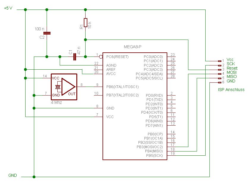 Danke, ich meinte die Schaltung von ATTiny2313 an Parallel-AVR-programmer,damit ich die Firmware drauf brennen kann Das Ziel ist ein Serial AVR-Programmer mit ATTiny2313 zu bauen.