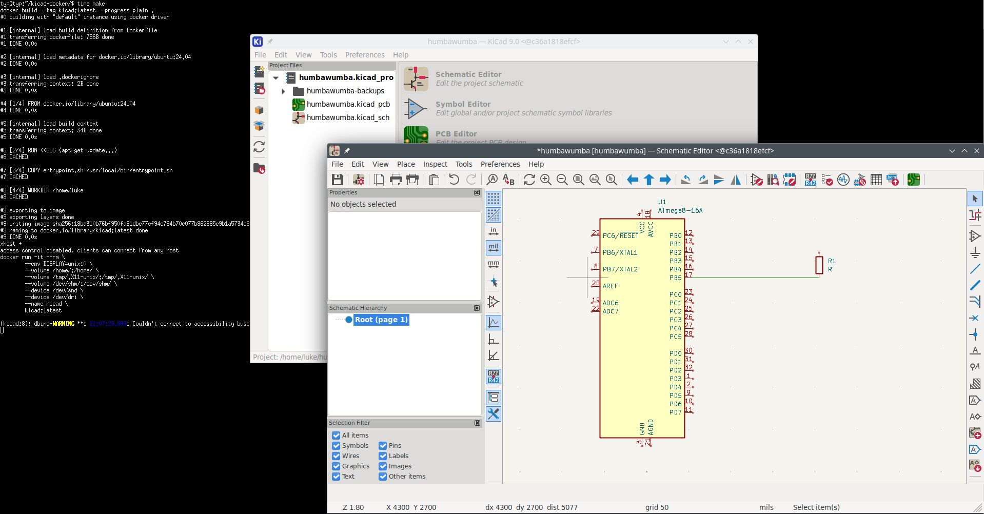 Liebe Forenden, angeregt durch diesen [1] Thread, habe ich das aktuelle Kicad samt Libraries in Docker eingepackt und ein kleines Makefile zum Bau eines Image und Start eines Containers mit Kicad gebastelt. Voraussetzungen =============== Voraussetzung ist, daß lokal Docker, make und envsubst (Paket gettext-base) installiert sind. (Ansonsten ist das keine Raketenwissenschaft, und erfahrene Nutzer können sich die entsprechenden Dateien und Befehle natürlich problemlos aus der Veranstaltung herauspicken.) Vorsicht: da alle Kicad-Libraries installiert werden, ist das Image am Ende wenig über 6 GB groß. Genug freier Diskspace ist also zwingend notwendig! Verwendung ========== Wenn diese Voraussetzungen erfüllt sind, kann in dem entpackten Verzeichnis aus dem Zip-Archiv einfach der Befehl "make" aufgerufen werden. Funktion ======== Das Makefile erzeugt mit envsubst aus dem Dockerfile.template ein Dockerfile und ersetzt dabei die Platzhalter aus dem Template mit dem Benutzernamen und der Benutzer-ID des lokalen Benutzers. Hernach wird ein Docker-Image mit dem originellen Namen "kicad" und dem Standard-Tag "latest" gebaut -- das dauert eine Weile -- und startet dann daraus Container mit dem keineswegs weniger originellen Namen "kicad". Wenn der Container einmal erzeugt wurde, ist es ausreichend, nurmehr "docker start kicad" einzugeben. Durch die Konfiguration des Benutzers im Dockerfile (und mittels envsubst) startet das Kicad im Container mit dem Benutzernamen, der Benutzer-ID, und durch den Mountpoint /home auch im Home-Verzeichnis des Benutzers. Wer das anders haben möchte, kann es natürlich gerne anders konfigurieren. ACHTUNG: vor dem Starten des Containers gebe ich den X-Server für Zugriffe von außen frei und sperre ihn nach dem Stoppen wieder. Das sollte auf den meisten Einzelplatzsystemen kein größeres Sicherheitsrisiko darstellen, es gefällt mir aber trotzdem nicht. Leider habe ich (noch?) nicht herausgefunden, wie ich das weiter einschränken kann, und ich habe auch schon lange nichts mehr mit xauth gemacht. Wer Ideen dazu hat, ist mir immer herzlich willkommen. Viel Spaß, Glück und Erfolg! [1] Beitrag "Installation KiCAD 9 unter Linux schlägt fehl"