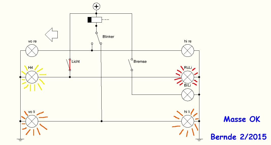 Martin L. schrieb: > braune Kohlemassewiderstand Hat nichts mit den Defekt zu tun. Und selbst wenn der 1kOhm hätte, das würde die Lichtanlage nicht nennenswert beeinflussen.