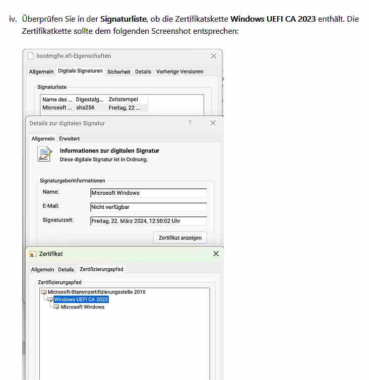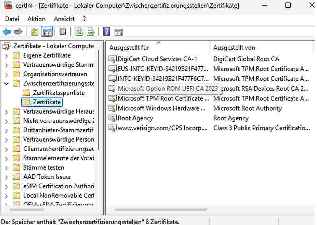 Die Zertifikate im TPM Modul werden gemeinsam mit der UEFI Firmware