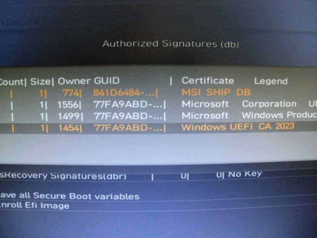 Oliver S. schrieb: > Danach ist es zu spät. Nein?! Wenn das Zertifikat ungültig ist gibt's beim Start einen Fehler, mehr nicht. Dann ins Bios gehen, "nein" und die Kiste tut wieder. Und selbst dann könne man immer noch den Update einspielen (wenn man denn einen hat der die Zertifikate aktualisiert) oder die Zertifikate manuell im Bios importieren und der Schalter kann wieder auf "ein" und gut.