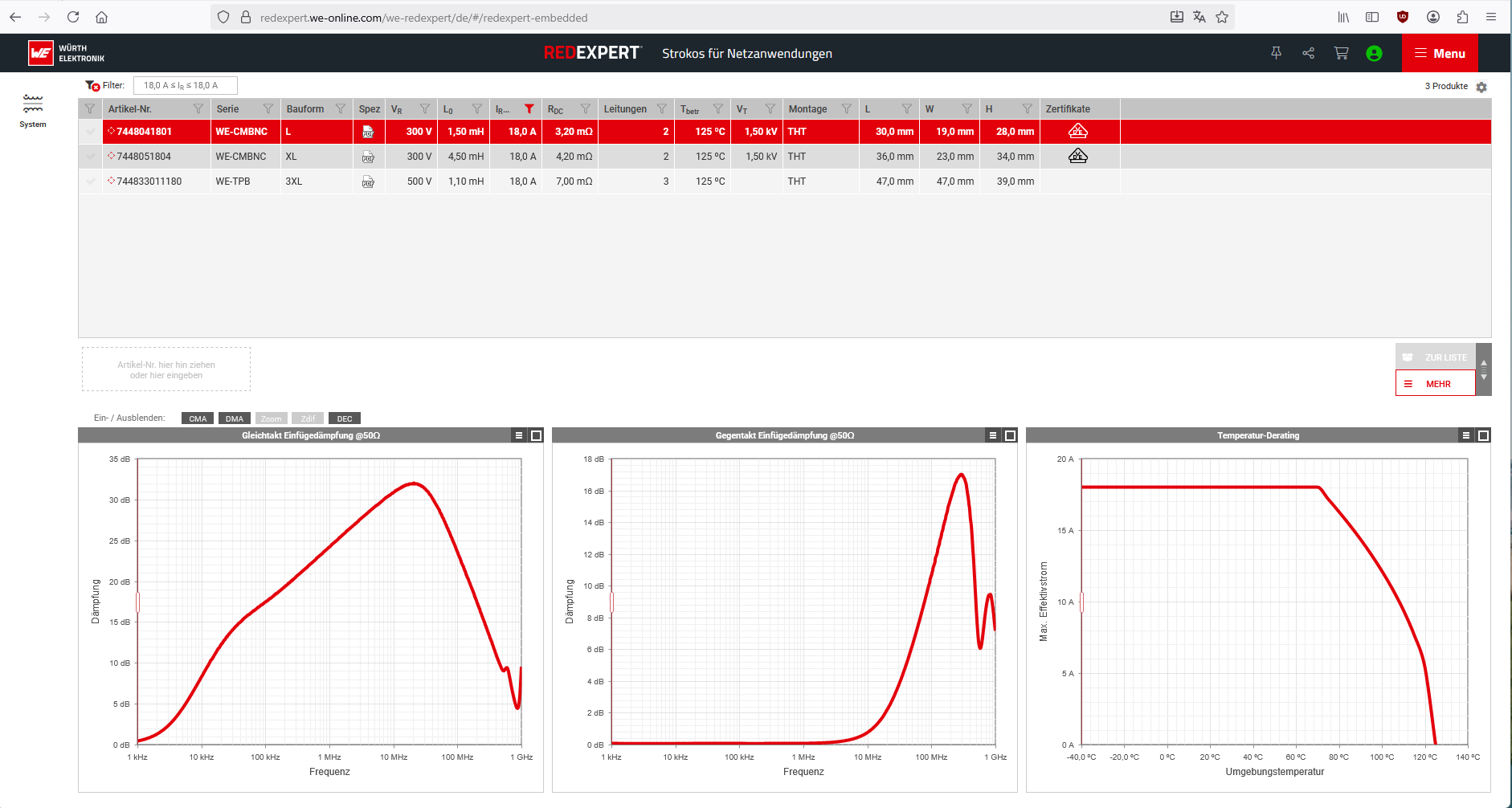 Ben schrieb: > Frage 2: wie legt man den Filter aus? und welche Werte für die > Kapazitäten würdet ihr einbauen? Da ist Würth auch Dein Freund. Würth hat die passenden Induktivitäten und Kondensatoren und alle mit Spice - Modellen! Seit einigen Jahren gibt es für die Kerkos auch Bias - Modelle die den spannungsabhängigen Kapazitätsverlust direkt in der Simulation berücksichtigen. Mit den idealen Modellen kommst Du da nicht weit, sie zeigen Dir nicht die Realität. Ist es Dir bekannt das nach der Eigenresonanz ein Kondensator induktiv agiert und die Induktivität kapazitive Eigenschaften annimmt? Erst dann macht ein Filter so richtig Spass. Würth bietet noch eine weitere grosse Hilfe: REDEXPERT. https://redexpert.we-online.com/we-redexpert/en/#/home Log Dich ein und Du findest was Du suchst. Z.B. ein EMI Filter Designer oder eine Unterstützung bei der Dimensionierung der Filter. Ausserdem wird Dir über RedExpert die Auswahl von Kondensatoren und Induktivitäten sehr erleichtert. Es werden Dir Diagramme der Bauteile gezeigt. Man kann dann auch mehrere Verläufe übereinanderlegen. Genau dies braucht der Ingenieur. mfg Klaus