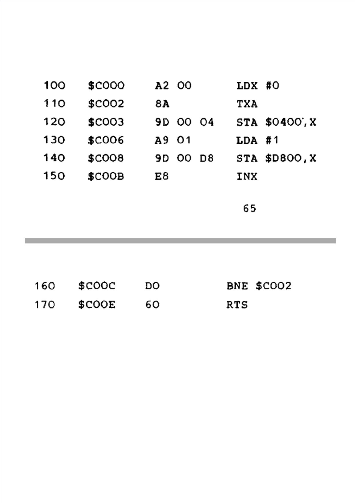 ich habe gleiches Programm mal mit POKE´s in Basic gemacht. Die Adressen für Video und Farb RAM passen.