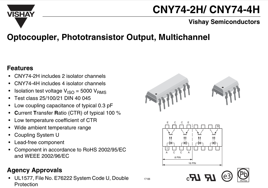 Hallo zusammen, da der Optokoppler CNY74-4H nicht mehr erhältlich ist wollte ich nachfragen ob jemand einen Ersatztypen vorschlagen könnte der 1:1 zu ersetzen ist. Ich habe noch ein paar Leiterplatten für den ich diesen benötige. Gruß K-H
