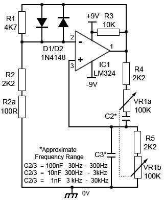 Im Pedal (oder anderen Audioschaltungen ..) will man keine steilen Flanken im Audiobereich (es sei denn man soll sie hören ;) ) Die Schaltung oben* erzeugt eine Sinus , braucht aber ein Stereopoti , C ist dann eher so im 10µF Bereich. Die Bipolare Versorgung stört etwas , also einen virtuellen GND/Bias , der so dimensioniert wird, dass sie als BIAS für einen Transistortreiber für die LED dient. Man möchte ja nicht unbedingt beim WahWah immer auf Null runtergehen. Eine weitere Verstärkerstufe(OP mit Poti) um den Hub einzustellen? Die Schaltung von Jobst weiter oben (Dreieck / Filter) geht natürlich auch. Braucht nur ein einfaches Poti zur Frequenzeinstellung . *) von https://learnabout-electronics.org/Oscillators/osc34.php