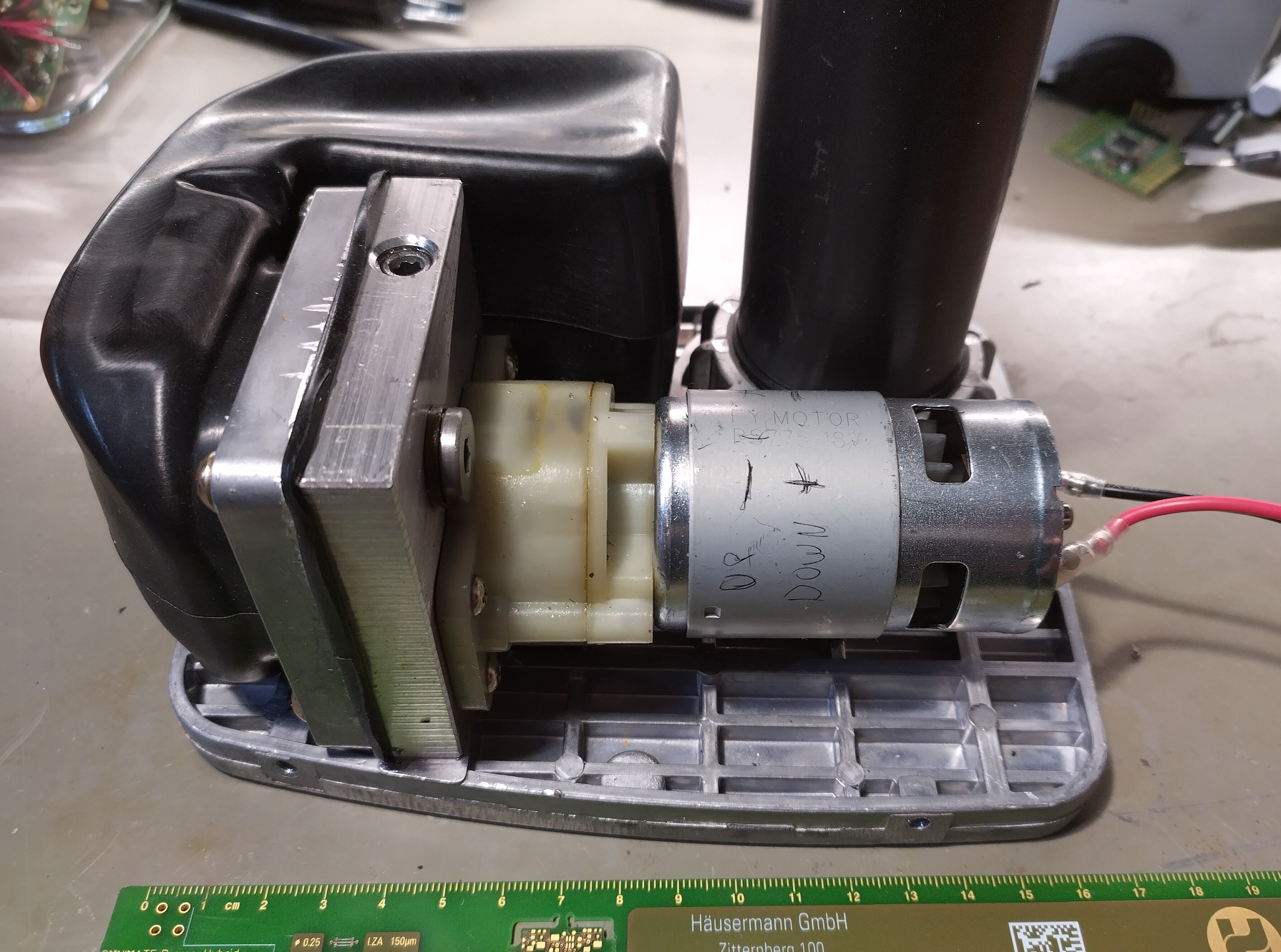 Für eine Hebevorrichtung (keine Sorge, ohne Gefärdung von Menschen etc ;-) ) brauche ich 8 Hebezylinder mit ca. 400mm Verfahrensweg und min. 2t Hubkraft. Aus einem alten, chinesischen "12V Wagenheber" habe ich eine im Prinzip recht ideale Lösung ausgebaut: Es handelt sich dabei um einen 12V Motor, Pumpe, Reservoir (das schwarze Gummiding) und einem Hebezylinder, der sogar doppelt ausfährt. Keine Ventile o.Ä. zu erkennen, wenn am roten Kabel 12V und am schwarzen 0V anliegt fährt der Zylinder ein (ca. 3A im Leerlauf) und wenn am roten Kabel 0V und am schwarzen 12V anliegt fährt der Zylinder aus (max. 10A wenn er meinen Kleinwagen anhebt, mehr kann ich nicht so einfach testen) Ich habe so ein Hydrauliksystem ohne Schaltventile bisher nirgends gesehen und hätte gerne mehrere davon, wie nennt man sowas? Idealerweise auch mit freierer Anordnung der Komponenten, also einen Hydraulikschlauch zwischen Pumpe und Zylinder.