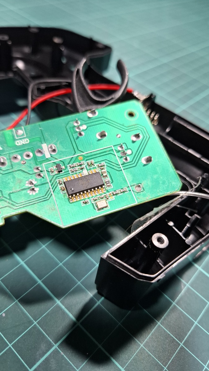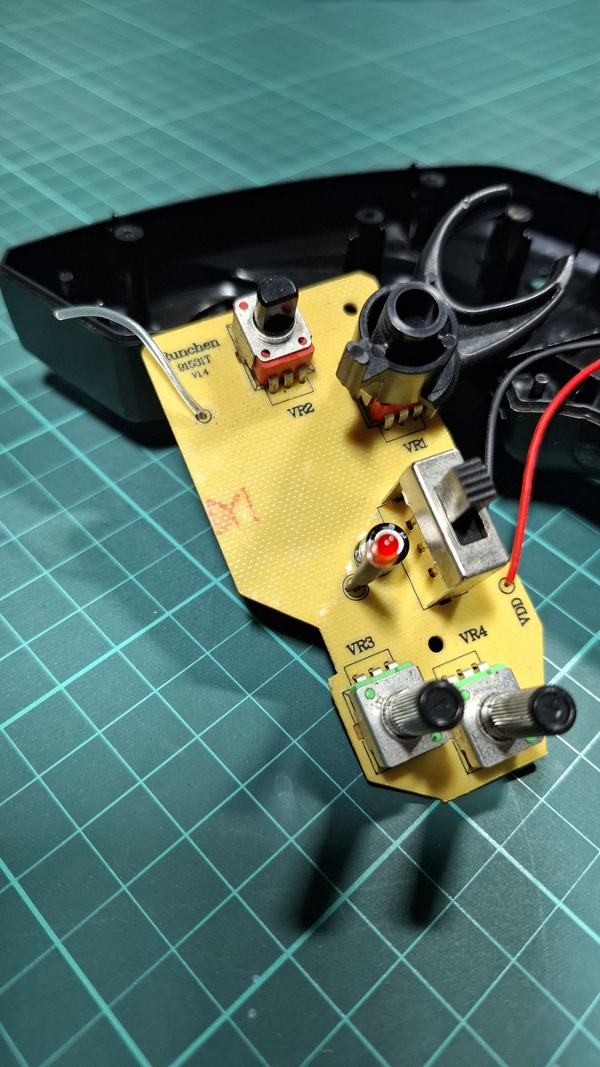 Hallo, ich habe von einem Kollegen einen Regler für ein DEERC Auto bekommen, bei dem der Poti für das Rechts/Links-Lenken kaputt ist. Der Poti hat einen Mittelabgang und 2 Pins für die Auslenkung. Im unbetätigten Zustand haben beide Pins jeweils 2,5kOhm. Wird der Poti zu einer Seite ausgelenkt, geht es auf fasst 0, bzw. der komplimentäere auf 5k. Der Drehknauf ist federzurückgestellt, leider funktioniert das zurückstellen nicht richtig. Mechanisch geht es in die Ausgangslage, aber der Widerstand ändert sich nicht. Mann muss dann in die Gegenrichtung drehen. Rastermaß sind 2,54mm. Ich konnte nur ein Marking mit CF und 2 Zahlen 502/70 auf dem Poti feststellen. Leider habe ich keine Beleuchtung mit Konstantstrom, sodass die Bilder etwas streifig sind. Ich suche die Marke und ggf. eine Bezugsquelle