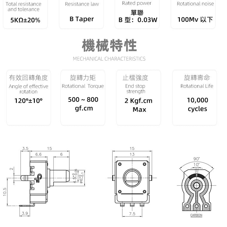https://tech.alpsalpine.com/e/products/category/potentiometers/sub/02/series/rk11k/ das wären die von Alps, die gibts bei Mouser für 2,14€, 12 sofort lieferbar. noch nicht der passende Ohmwert, und nur centering. Ein vierter Pin ist "dummy" bezeichnet. https://www.mouser.de/ProductDetail/Alps-Alpine/RK11K114001Z?qs=6EGMNY9ZYDT9burwMecKZA%3D%3D