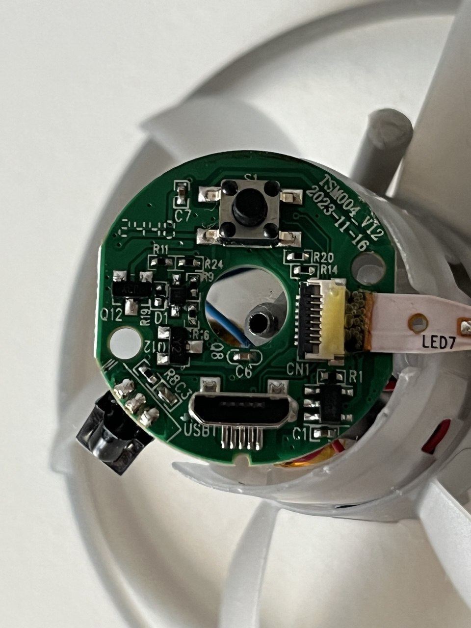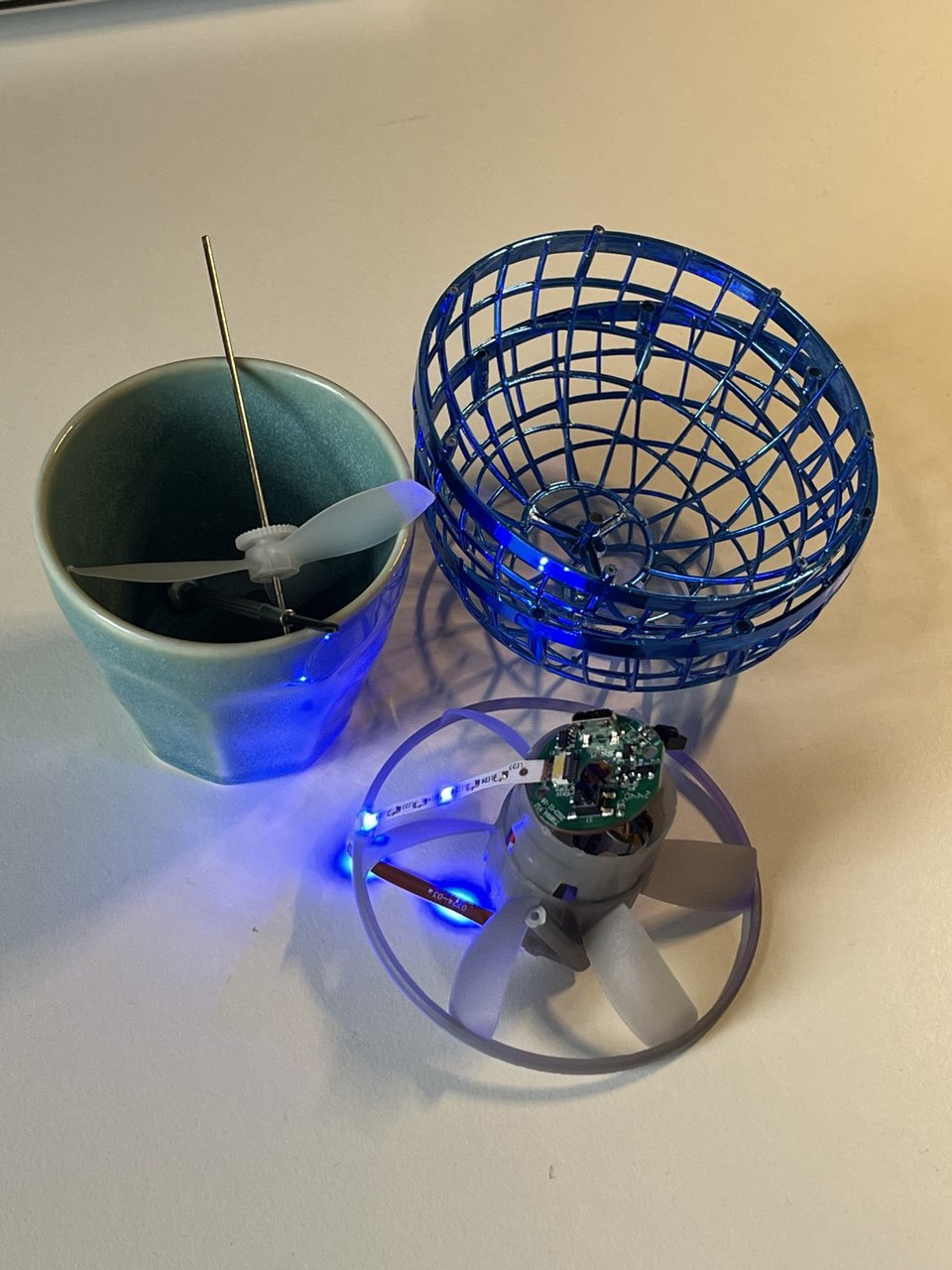Simon schrieb: > Vielleicht irgendein Beschleunigungssensor Der funktioniert ja, beim schütteln geht es an. Der Chip am Rand ist ein https://www.jameco.com/Jameco/Products/ProdDS/2354815.pdf , also ein Fernbedienungsempfänger ohne Nutzen. Der angebliche brushless Motor ist gelogen und in Wirklichkeit ein billiger bürstenbehafteter Motor. Wäre es ein BLDC könnte der Treiber überhitzen und abschalten, aber hier ist das nur ein simpler Transistor ohne Übertemperaturerkennung. Die LiIon scheint einen Laderegler zu haben. Von AI weit und breit nichts drin.