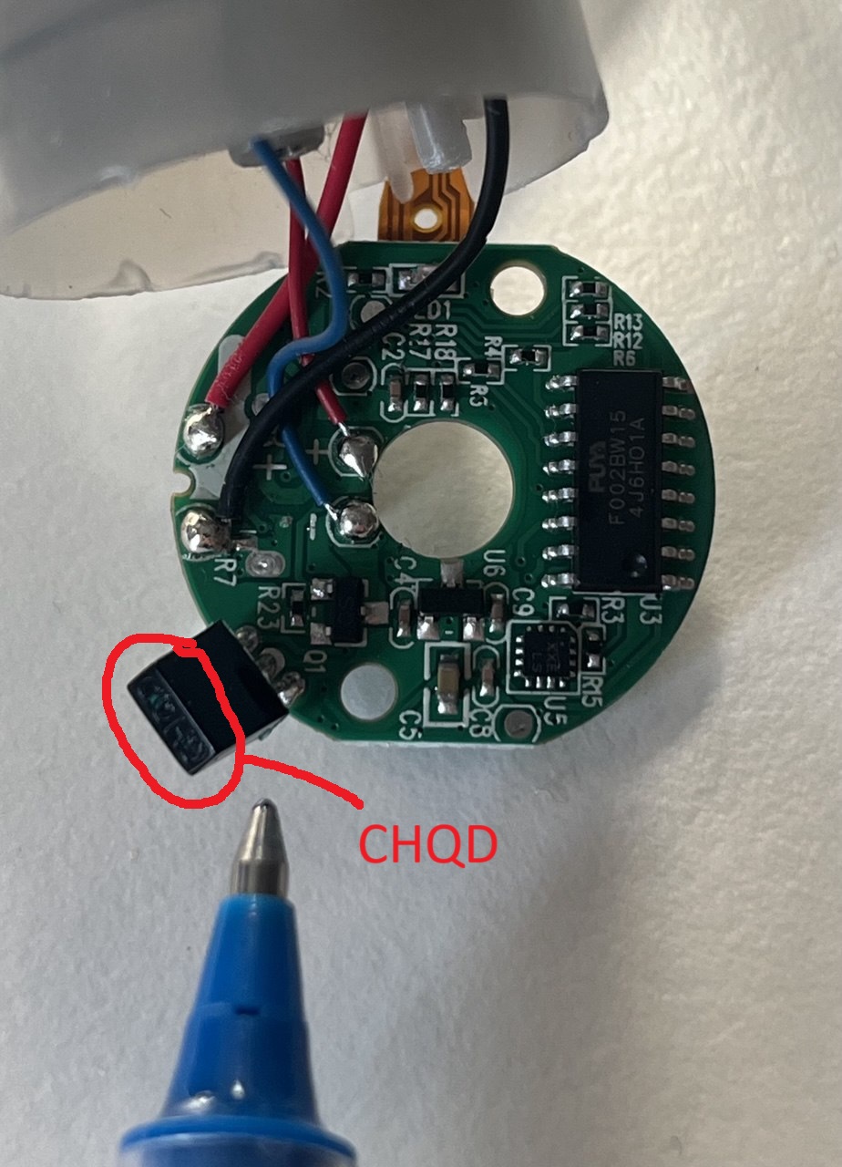 Simon schrieb: > Vielleicht das dickere schwarze Teil am Rand der Platine (oben steht > dort "CHQD" drauf)? Das ist ein Infrarot Empfänger, gibt es dazu eine Fernbedienung? Also das wird es eher nicht sein.
