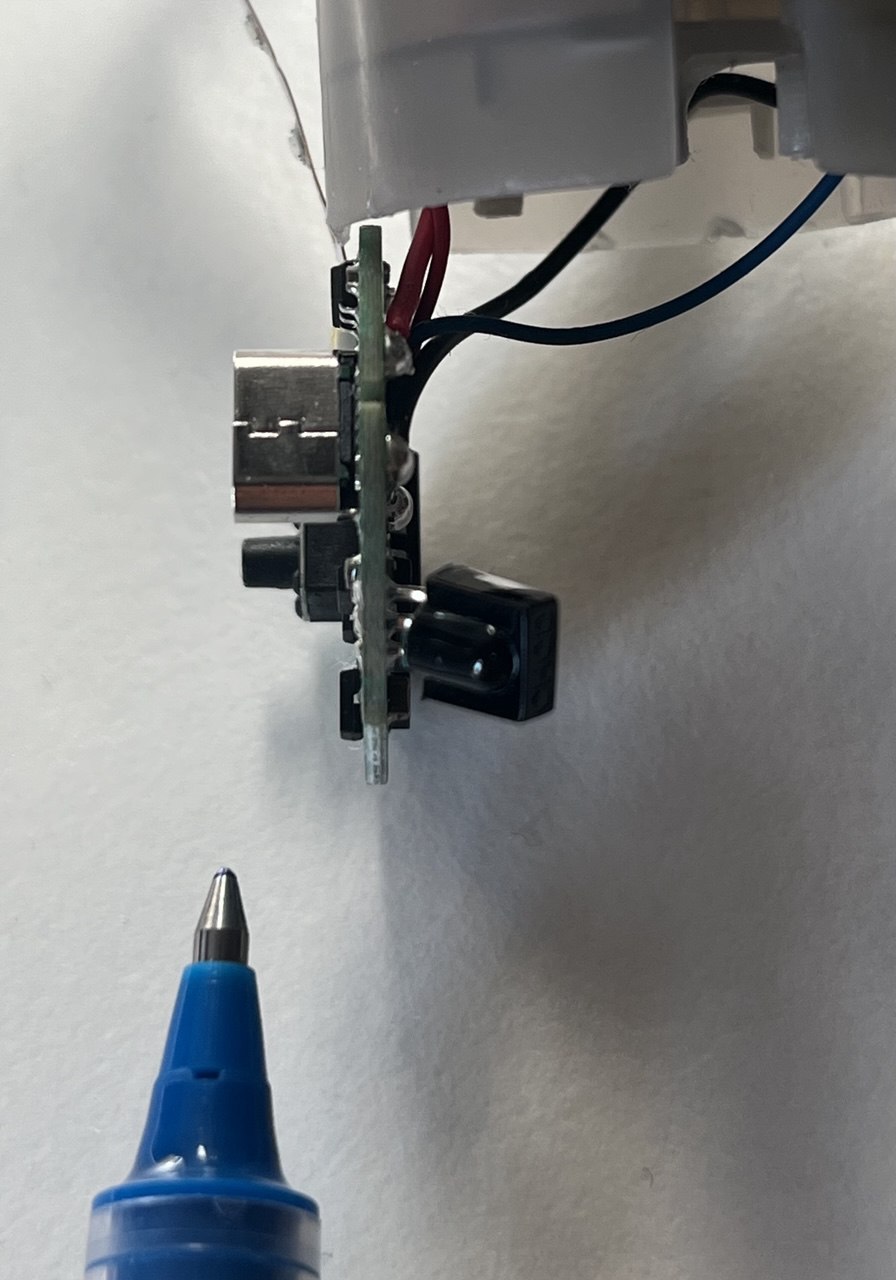 Teo D. schrieb: > Ich würde erstmal die Lötstellen, mit ner Lupe kontrollieren. > Der IR-Empfänger wäre ein guter Kandidat, um sich hier los zu "rütteln". > Wie die SW drauf reagiert... Warum is das Ding überhaupt verbaut? Lötstellen sehen unter der Lupe auf den ersten Blick gut aus. Michael B. schrieb: > Der funktioniert ja, beim schütteln geht es an. Ja stimmt auch! Mein erster Gedanke war, dass der vielleicht kein konstantes Signal, sondern einfach nur einen Impuls liefert. Aber das war natürlich Rätselraten, das Problem könnte auch überall anders liegen. Irgendwie hatte ich die Hoffnung halbwegs schnell eine Schwachstelle ausfindig machen zu können, aber ehrlich gesagt fehlen mir gerade etwas die Ideen (und wahrscheinlich auch die Expertise). Und um jetzt bei den SMD-Teilen einen Fehler zu finden, habe ich leider weder die Zeit noch das Equipment (und wahrscheinlich auch nicht die Nerven :D). Also würde ich das Projekt erstmal auf Pause stellen und in den Schrank legen. Danke für die Kommentare und falls jemand noch eine Idee hat, gerne her damit!