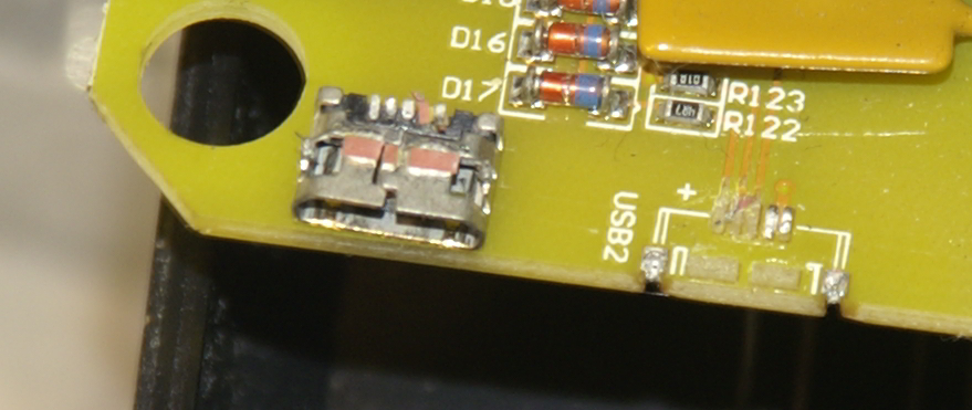 Das ist reparierbar. Man kommt an alle Signale gut ran (z.B. über R122 und R133) und kann daher mit Fädeldraht direkt an die Pins der USB-Buchse gehen, dann die (zum Glück weitgehend unbeschädigten) GND-Pads verlöten und den ganzen Kram danach mit viel Epoxidharz festkleben. Natürlich wird das immer ein wenig empfindlich bleiben. Aber es wird funktionieren. Blöd ist, dass die USB-Buchse so filigran ist, das Reinigen und danach behutsame Hochbiegen der Pins und individuelle Anlöten der Fädeldrähte, auch wenn's nur drei sind, dauert einfach recht lange. Nur: Jemanden zu finden, der das macht, wird leider nicht einfach. Es ist eine Arbeit, die einigermaßen filigran ist und zwar nicht wirklich lange dauert, aber jetzt auch nicht extrem schnell geht, da bist du in einem Repair Café tatsächlich einfach am Besten aufgehoben. Wenn mir das passieren würde, würde ich mir wohl 1-2 Stunden Zeit dafür nehmen, danach ist das inklusive Vorbereitung und Wegräumen komplett erledigt. Hätte ich die Zeit gerade, würde ich auch anbieten, das für Dich zu reparieren, die habe ich aber momentan leider nicht.
