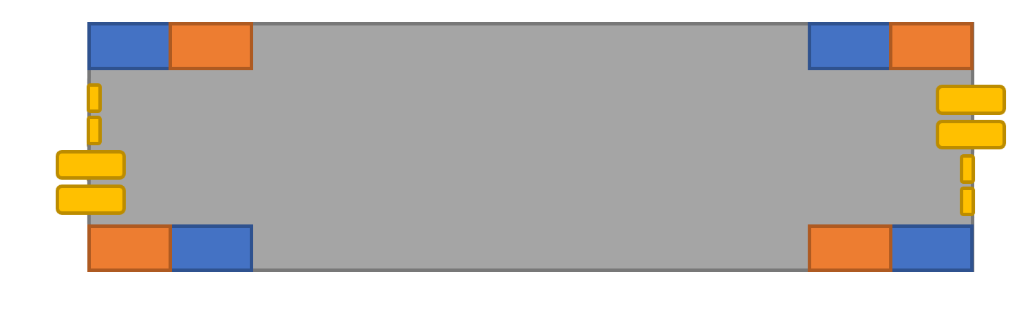 Torsten B. schrieb: > Was ist mit den Apple-Magnet-Powerverbindern? USB hab ich auch schonmal > magnetisch gekoppelt gesehen. Die sind nicht symmetrisch im Sinne des Threaderstellers. Der möchte nicht eine Steckverbindung haben, bei der der Stecker um seine Längsachse gedreht werden kann, sondern eine, bei der beide Steckverbinder gleich aufgebaut sind. Wenn man direkt nebeneinander einen "Magsafe"-Stecker und das Gegenstück anordnet, dann hat man das gewünschte. Von oben* betrachtete Variante mit vier Kontakten: