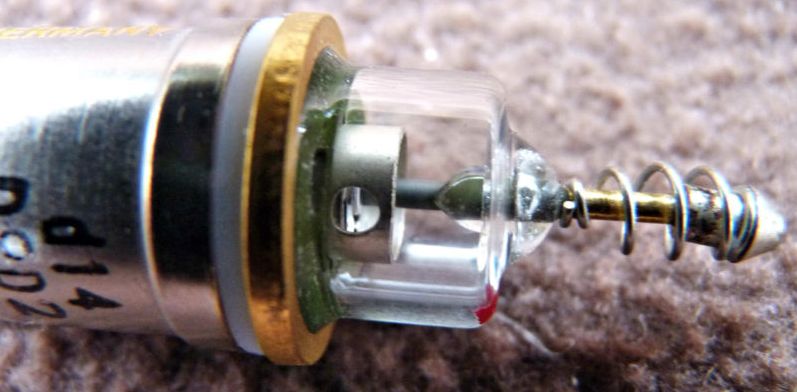 Reparatur HP410B Röhrenvoltmeter im Manual findet man unter Abschitt IV, Seite 2 eine Explosionszeichnung, wie der Tastkopf zusammengesetzt ist. Die Teile 7 und 8 (Spitze und Kontaktfeder) sind je nach Diode (2-01C oder EA53) unterschiedlich. Wer kann mir sagen, welche Maße diese Teile je für die Diode 2-01C und die Diode EA53 haben? Die EA53 ist gemäß Datenblätter um 0,55 mm länger, als die 2-01C. Herzlichen Dank schon mal für die Mühe, die Sie für das Nachsehen und Nachmessen haben. Es würde mir schon helfen, wenn ich die Maße der Teile für eine Diode bekomme, denn man könnte den Unterschied dann vermutlich daraus ableiten.