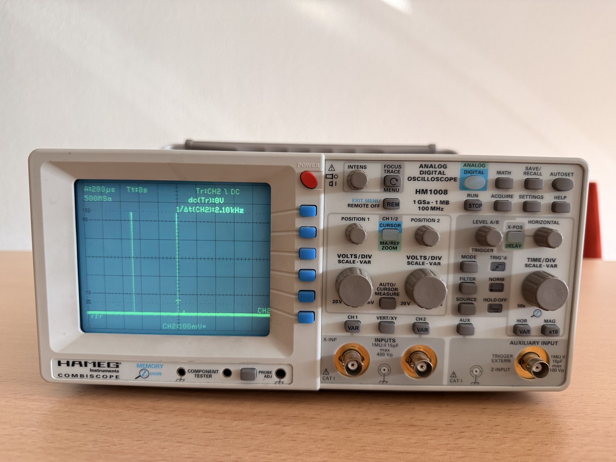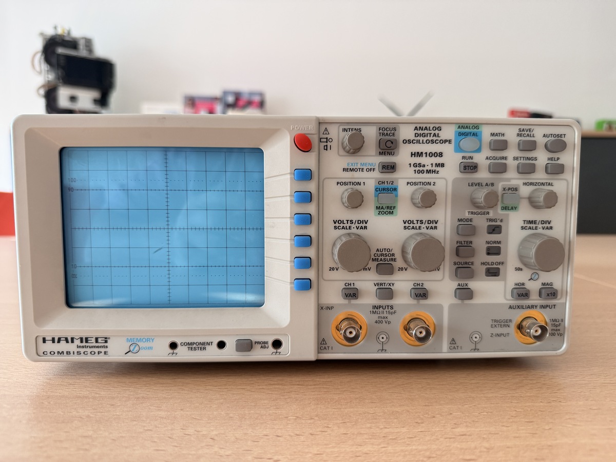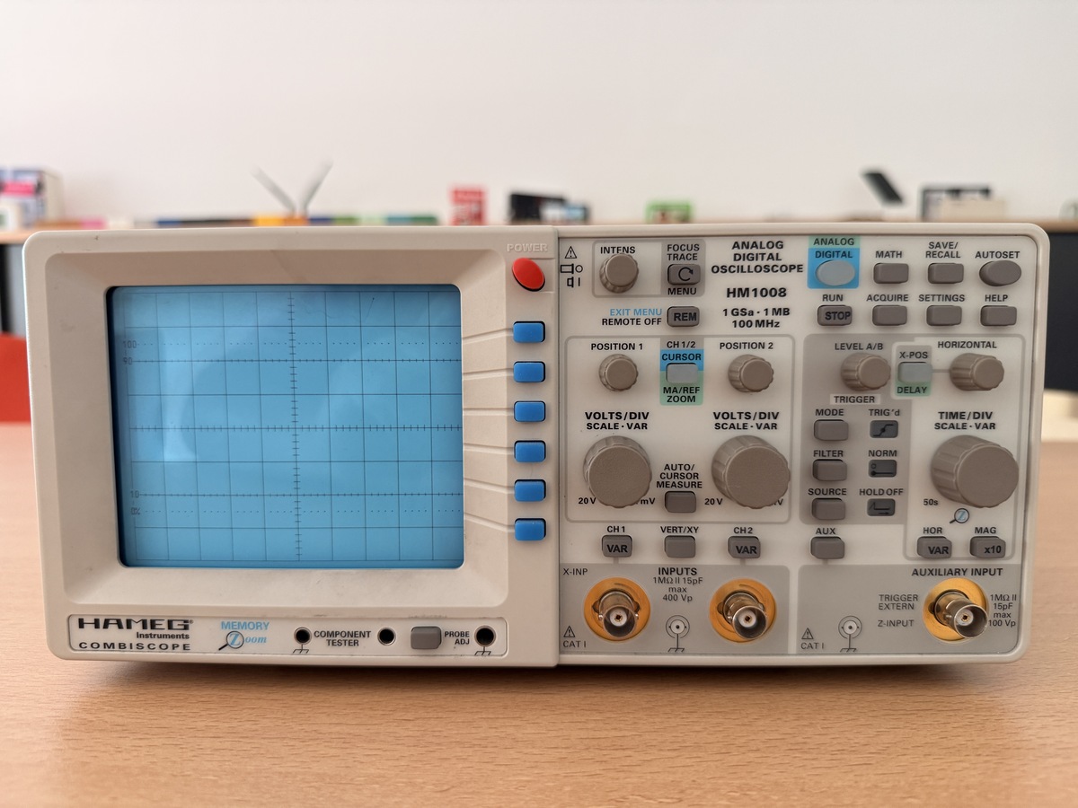Verkaufe mein Hameg HM1008 Oszilloskop Technische Highlights: 100 MHz Bandbreite – präzise Messungen 2 analoge Kanäle – ideal für differenzielle Messungen 1 GS/s Echtzeitabtastung – für schnelle Signale 10 GS/s Zufallsabtastung – für komplexe Signale 1 MPts Speicher pro Kanal – für detaillierte Analysen FFT für Spektralanalyse – Frequenzanalyse leicht gemacht RS-232 Schnittstelle 450€ VB inklusive Versand Zustand: Ich weiß, dass es sich einschalten lässt, aber um ehrlich zu sein, habe ich keine Ahnung, wie man es benutzt – daher kann ich nicht beurteilen, ob es einwandfrei funktioniert Abholung/Versand: Bevorzugt Abholung im Raum Köln Versand möglich nach Absprache.