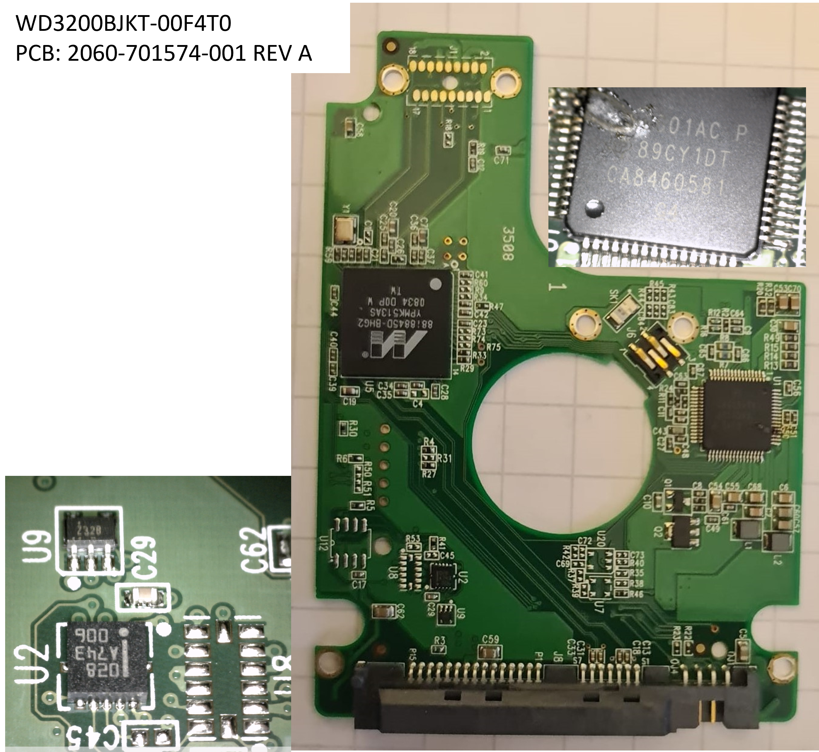 Guten Morgen Das Bauteil U2 misst etwa 3 mm x 3 mm und ist etwa 1 mm hoch. Ich dachte, es könnte der Konfigurationsspeicher der Festplatte sein. Vielleicht sitz der aber auch an einem ungüntigeren Platz:) Beste Grüße und Danke für die Hilfe Geri