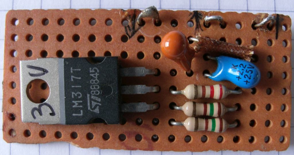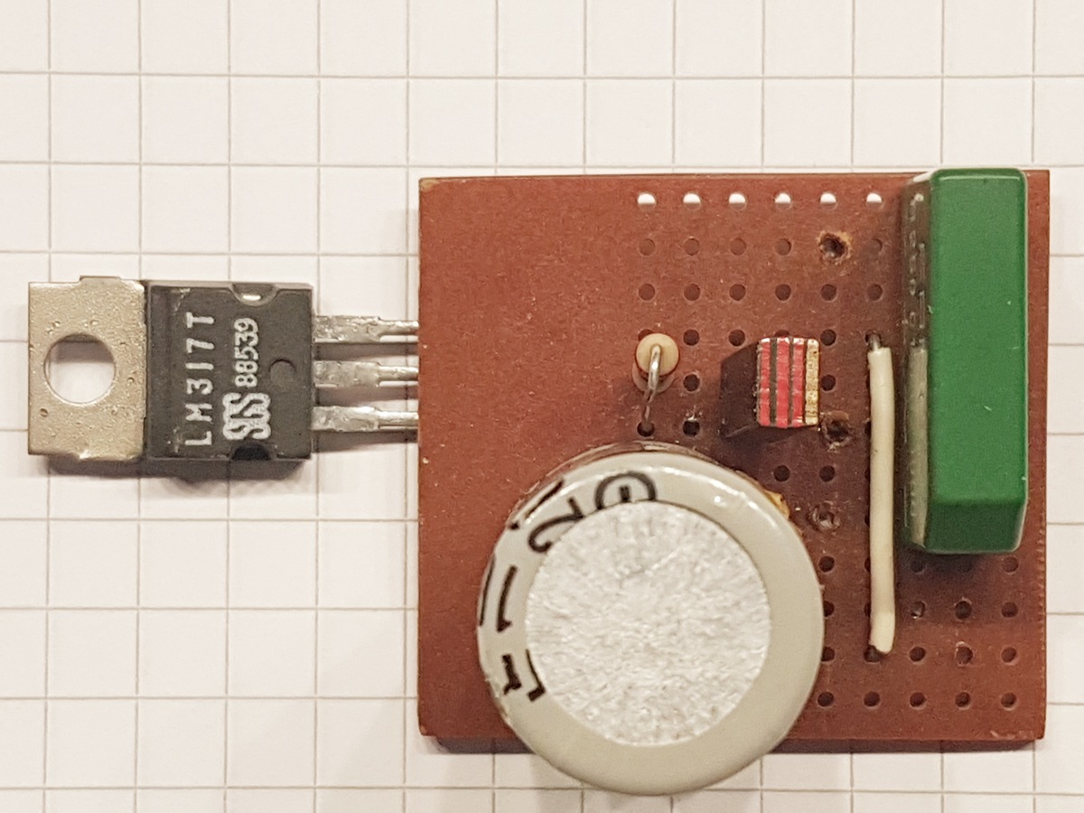 Hier das Ergebnis des oben versprochenen Tests. Also: R1 = 220 Ohm; R2 = 150 + 150 Ohm in Reihe Uin = 24 V U Out = 2,94 V Tantal am Eingang 2,2µF/35V Tantal am Ausgang 2,2µF/25V kein Kondensator an Pin Adjust Bei 100mA Ausgangsstrom wird das IC lecker warm. Passender Kühlkörper und richtige Montage (Klammer) zwingend erforderlich. Dieses Teil stammt aus dem Radionetzteil, sollte 3V liefern. (Hab' ich jetzt nicht extra umgemodelt auf die Schnelle.) Die Tantals kann man ja rausschmeißen und durch was Besseres ersetzen. Und: IC ist höchstwahrscheinlich Originalware. ciao gustav