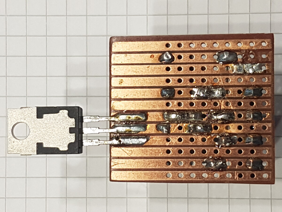 Das Platinenlayout spielt auch eine Rolle. Alle GND gehen bei "mir" an den gemeinsamen Bezugspunkt. Und jetzt werde ich geteert, gefedert, gesteinigt, bespuckt und aus dem Forum herausgeekelt. Aber trotzdem, die Schaltung im Bild funktioniert bei mir schon 10 Jahre. Habe auch eher den Verdacht, dass das IC defekt ist. Und UIn Max ist afaik hart an der Grenze. Ohne Kühlkörper wird das nix. ciao gustav