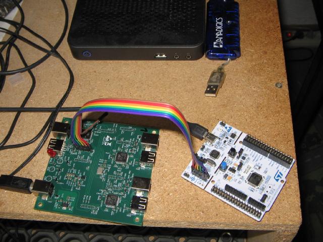 Moin, Mal n kleiner Zwischenstatus, nachdem mir ein berittener Bote heute ein Packerl bestueckte PCBs aus dem Reich der Mitte zustellte. Meinen Originalschaltplan hab' ich auf die Haelfte der Ports (also von 6 auf 3) eingedampft. Die Bauteile haetten sonst nicht so recht schmerzfrei auf 100x100mm PCB einseitig gepasst. Damit gings dann ganz gut. Fuer einen KM-Switch mit 2 Eingaengen fuer Maus und Tastatur und 4 PC "Ausgaengen" brauchts dann 2 PCBs, die ich dann so sandwichartig zusammensetzen darf. Spannungen passen grob, soweit ich's gemessen hab. Was ich ja gerne als erstes bei der Inbetriebname von neuen Boards mache, ist, mit einem alten Analogmultimeter in einem kleineren Ohm-Messbereich mal den "Innenwiderstand" von Betriebsspannung nach Masse zu messen, ohne dass sonst irgendwas angeschlossen ist. Nur so, damit evtl. Kurzschluesse auffallen, bevor es zu sehr qualmt. Da konnte man dann schon schoen sehen, dass der Boostconverter von dem bisschen Messstrom in den Hiccup-Mode gegangen ist, und tapfer versucht hat, schonmal die 5V fuer die USB-Host-Ports zu erzeugen. Auf einen der µCs hab' ich schonmal ein LED-Blinkprogramm geflasht, das ging gut und blonk auf Anhieb, d.h. Taktversorgung und Bootpins scheinen auch grob zu passen. Haette erstmal schlimmer kommen koennen ;-) Zeit fuer ein kleines Paeuschen...Dem Werke bekommen weder Eyle noch Hast. Gruss WK