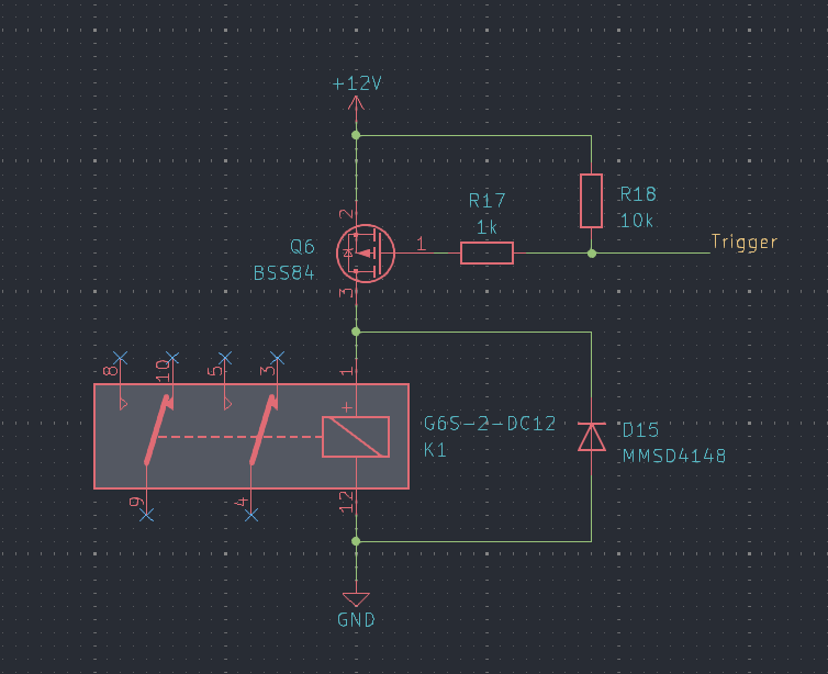 Hallo, ich habe eine Frage zu meiner Schaltung. Ich möchte ein G6S-2 DC12 mit einem BSS84 schalten. Ich habe dazu mal eine Schaltung gezeichnet, funktioniert das so? Ich habe keine Erfahrung mit polarisierten Relais.