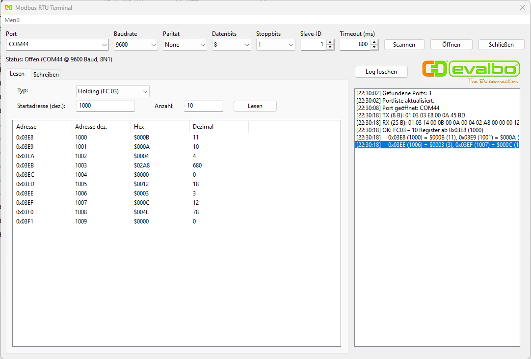 Hallo, ich habe ein kleines Modbus RTU Terminal geschrieben. Es hat gerade mal um die 540 kByte mit grafischer Oberfläche als ausführbare Datei ohne Installation. Da ich kein einfaches sauber funktionierendes Terminal hierfür gefunden habe, habe ich selbst eines erstellt. Es ist komplett kostenlos. Vielleicht ist es auch für andere hilfreich. Das Terminal unterstützt Read Holding und Input Register FC03/FC04 und Write Single und Multiple Register FC06/FC16. Über Feedback bin ich dankbar. Gerne erweitere ich das Terminal, oder behebe Fehler. Es ist selbstverständlich frei von Viren, Malware, etc.. VG Roland
