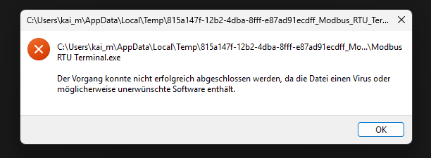 Joachim .. schrieb: > Und das heißt? Dass fälschlicherweise Schadsoftware erkannt wurde. Ich habe ja den Sourcecode vor mir liegen und mein System ist frei von Schadsoftware. Würde mich sehr wundern, wenn da was infiziert wäre. :) Kommt die Meldung von Windows selbst? Über virustotal.com kannst du prüfen, welcher Virenscanner darauf anschlägt. Das sind 4 Stück von geschätzt 100 Virenscanner, darunter Microsoft. Wobei ich bei mir keine Meldung bekomme.