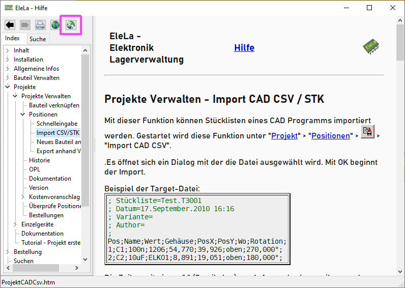 Edit: Ich habs, es muessen zwei Felder belegt sein. Comment,ArtikelNr,Variant,Designator,Quantity "Power Switch IC","BTS432E","BTS432E","U1","1" funktioniert. Aber welches wirt waere die englische Entsprechung fuer ArtikelNr die von der Elela erkannt werden wuerde?