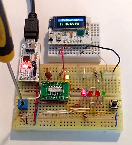... der wohl einmillionsteundeine Rechteckgenerator oder noch nie war blinken so schön wie heute! ############### Spaß beiseite, da ich am Aufarbeiten von mehreren kleinen und einem großem Projekt bin stelle ich hier das einfachste vor, einen Taktgeber, den ich für ein anderes Projekt benötigt habe (und doch tatsächlich keinen Timer 555 hier habe). Auch wenn der Aufbau jetzt mit einem 16-Pin Chip realisiert wurde, ist er für einen CH32V003-J4M6 gedacht, den ich hier schlicht aus der Tatsache heraus verwendet habe, weil ich mir meinen letzten 8-Pin Chip zerstört habe. Die Firmware verwendet ausschließlich die Pins, die auch auf einem J4M6 vorhanden sind. Die Software produziert eine Frequenz von 0,5Hz .. 20 kHz in 4 Frequenzbereichen. Welcher Frequenzbereich aktiv ist, wird über 4 Leuchtdioden angezeigt. Die Frequenz selbst wird über einen Trimmer/Potentiometer eingestellt. Der Trimmer fungiert als Spannungsteiler und diese Spannung wird analog vom VH32V003 eingelesen und dementsprechend wird eine Frequenz erzeugt. In Ermangelung genügender GPIO's des 8-Pin Chips wurde die LED Anzeige über eine Wired Logik (siehe Schaltplan) realisiert. Grundsätzlich könnte sich der Rechteckgenerator für Einsteiger eignen, weil in der Firmware nachgesehen werden kann, wie man - wenn auch nur mittels Polling - eine analoge Spannung einliest und wie man Timer 2 und von einen von diesem ausgelösten Interrupt verwenden kann. Da ich momentan in einer Art "Rausch" bin, kleinere Schaltungen auf ein PCB zu setzen um sie auf einem Steckbrett nutzen zu können (siehe Foto: sehr kleiner Programmer minichlink kompatibel und Picomon3) wird auch dieser Rechteckgenerator auf meiner nächsten PCB Platz finden. Für denjenigen der sich aus Schaltung oder Firmware etwas entnehmen kann: Viel Spaß damit. Ein Video vom Rechteckgenerator gibt es auch: https://www.youtube.com/watch?v=6X88YehenaM