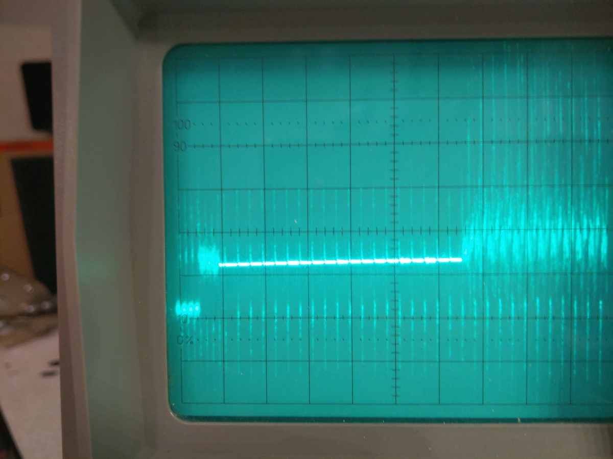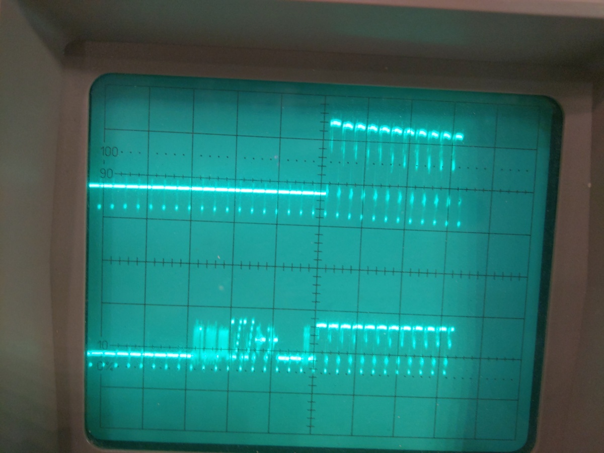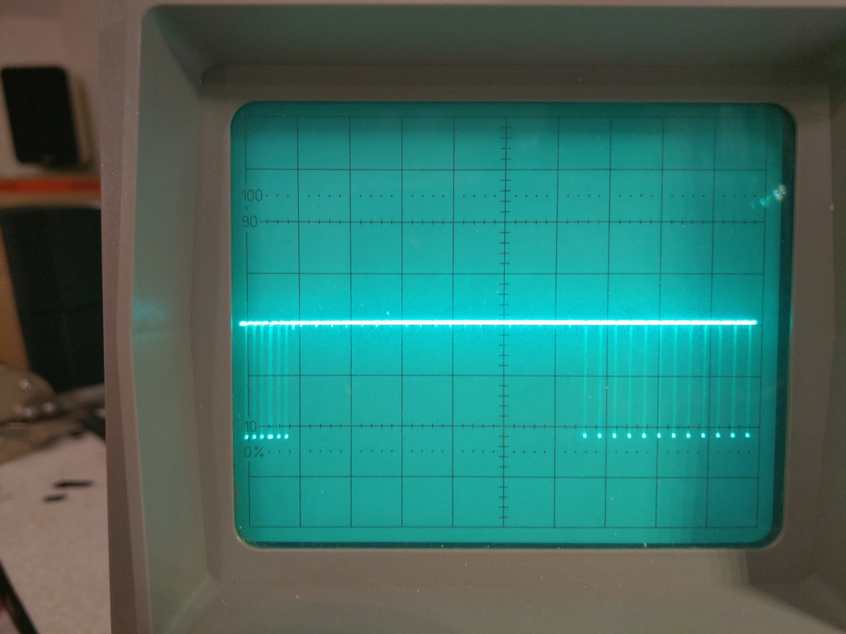 Also das VSync Signal muss ja so in etwa wie ein Rechteck aussehen. Das tut es auch für kurze Zeit, verzert dann aber und bricht vollständig ab für eine kurze Zeit.