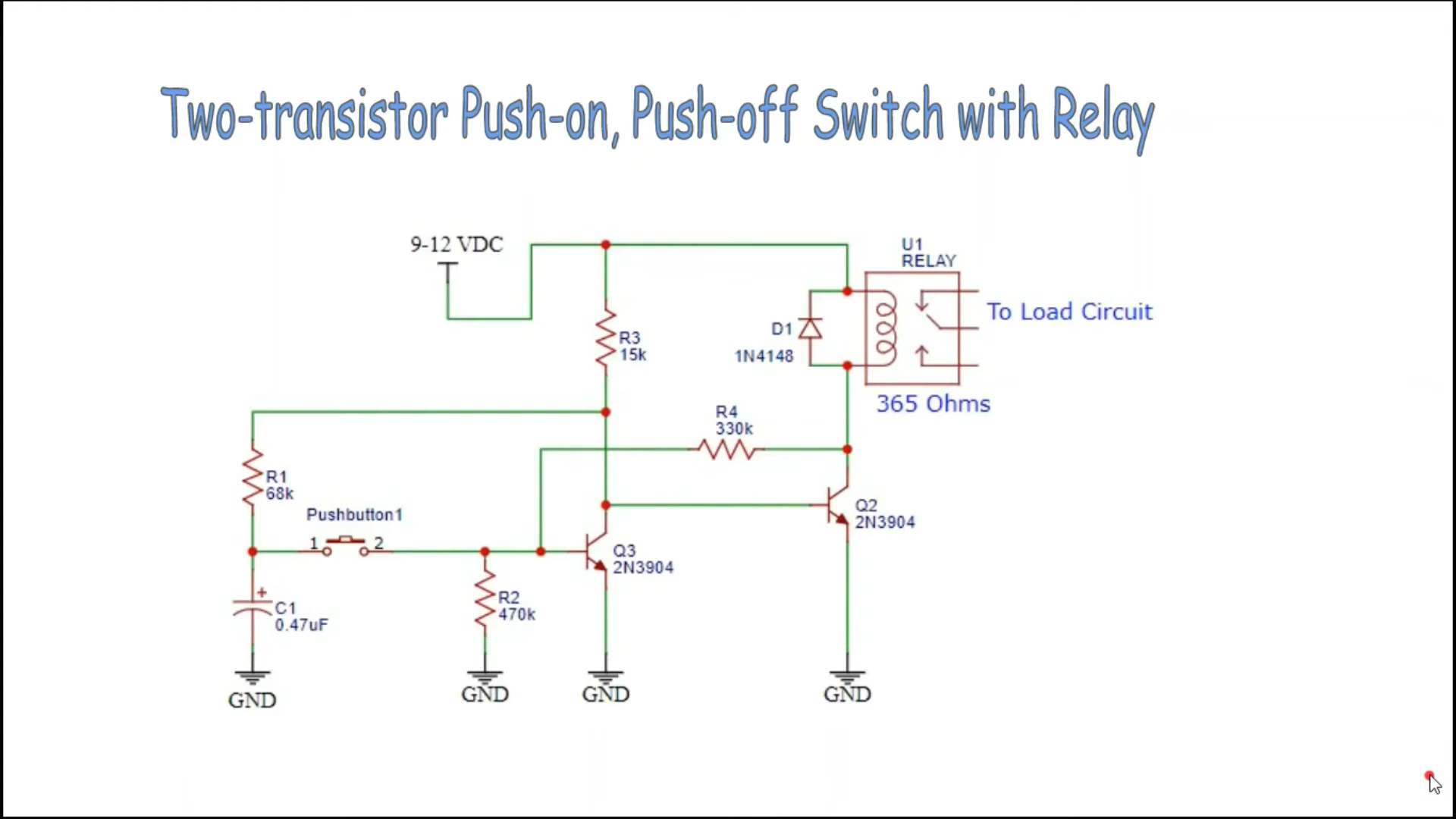 Ich habe hier ein RF modul welches ich nutzen möchte, um ein Relais ein-/ausschalten zu können. Das RF modul kommt mit einer Fernbedienung (knob) und bei Tastendruck geht der Pin vom entsprechenden Receiver HIGH. Nun dachte ich mir, ich könnte Strom sparen, indem ich eine Toggle Schaltung an den Receiver klemme, da die Fernbedienung batteriebetrieben ist und ich die Taste solange gedrückt halten muss, wie ich ein HIGH Signal haben möchte. Eine Push ON/OFF Schaltung (toggle schaltung) wäre ideal dafür. Im Internet kam ich auf dieses Bild und habe die Schaltung gleich mal nachgebaut. Sie funktioniert. Ich verstehe auch warum sie funktioniert. Aber... Leider hat die Schaltung den Nachteil, dass beim Anlegen einer Spannung Q2 eingeschaltet ist (weil Q3 aus ist). Das ist nicht gewünscht. Ich möchte, dass die Schaltung beim Anlegen einer Spannung (Batterie, 12V Netzteil, etc) im AUS Zustand ist. Also habe ich rumprobiert. Die einfachste Lösung wäre, Q2 mit einem PNP zu invertieren, aber das würde die Anzahl der Komponenten erhöhen. Ich dachte mir, es muss auch so funktionieren und so kam nach etlichen Versuchen auf die Idee, zwischen Base des Q3 und +12V eine Diode in Sperrrichtung zu schalten. Nun funktioniert die Schaltung wie gewünscht. Aber ich steige einfach nicht dahinter, warum die Schaltung funktioniert. Ich kann es nicht ab, wenn ich etwas baue, das am Ende funktioniert, aber ich nicht verstehe warum eigentlich :) Kann mir jemand erklären, warum die Diode (die nicht eingezeichnet ist im Bild), dafür sorgt, dass beim Einschaltzeitpunkt Q3 AN ist? (und Q2 somit AUS).
