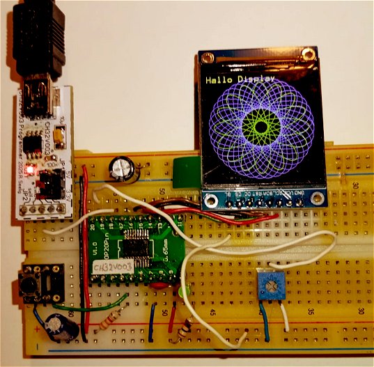 Nachdem ich jetzt Ewigkeiten Dateien gesichtet und gesäubert habe, Ordner neu sortiert, Doku's zu meinen Projekten geschrieben und Schaltpläne gezeichnet habe mußte jetzt etwas programmieren zur Entspannung her. Also habe ich mir die Aufgabe gestellt, endlich einmal einen Spirographen für kleine Spielereien auf einem Mikrocontroller ohne Gleitkommaunterstützung zu machen (so entspannt war es nicht, weil ich endlich auch ein ST7789 Display sauber an einem CH32V003 zum Laufen bringen wollte und das SPI hierfür etwas gezickt hat, bis ich ie richtige Einstellung hierfür gefunden hatte). Der Hintergrund also ist, dass das auf einem Controller mit sehr wenig Flash (V003 hat nur 16 kByte) laufen soll und ein Aufruf der Sinusfunktion aus math.h schon alleine nicht in den Speicher passt. Dann habe ich eine Lösung für einen komfortableren Spirographen, der mit Festkommaarithmetik aber Sinus berechnet, aber im Spirographen dann doch Gleitkomma benötigt. Also mal das Hirn anstrengen und überlegen wie das im Flash knapper geht (soll ja auch im CH32V003 noch laufen). Das Ergebnis kann man in der angehängten Source sehen. Sinus wird aus einer LookUp-Tabel entnommen und der Spirograph wird hieraus gefüttert. Display hat hier Auflösung 240x240. Eine Erhöhung der scale in der LookUp-Table von 3 auf 4 feste Nachkommastellen bringt keine Verbesserung der Qualität des Graphen. Insgesamt benötigt der Spirograph inkl. eines einzelnen Aufrufs 740 Byte im Speicher (inkl. der LookUp-Table die alleine schon 180 Byte benötigt). Jetzt weiß ich, dass manche Informatiker / Mathematiker nahezu magische Fähigkeiten haben sehr ausgefeilte Methoden zu präsentieren. Hier jetzt die Frage an die Mathematiker / Informatiker: Das geht doch bestimmt noch kürzer, vllt. ohne LookUp-Table, oder ?