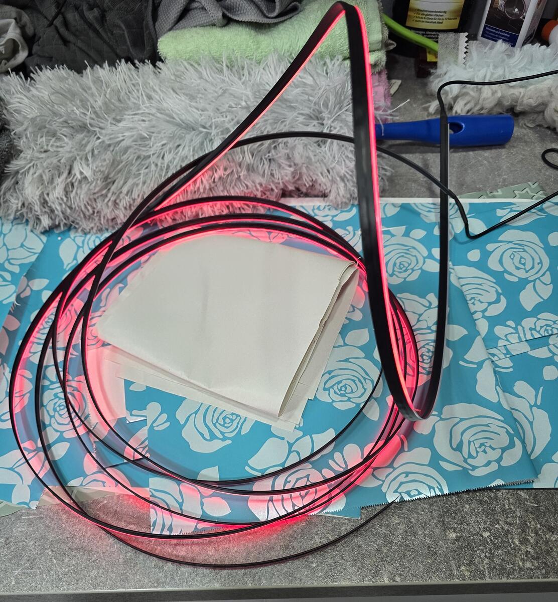 Lothar M. schrieb: > Ralf S. schrieb: >> Kann nur von hinten jede SMD erkennen, aber mehr nicht. > Dann schneid doch einfach mal am Ende des Streifens eine LED ab. > Danach gibt es 2 Möglichkeiten: > 1. Wenn nur die weggeschnittene LED dunkel ist, dann kannst du überall > schneiden. > 2. Wenn dann mehrere dunkel sind (wg Reihenschaltung), dann weißt du ja > den "Multiplikator". Hier mal ein Foto vom Umbau. Mir gefällt es sehr gut.