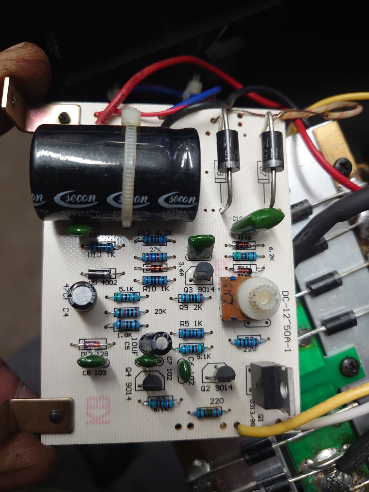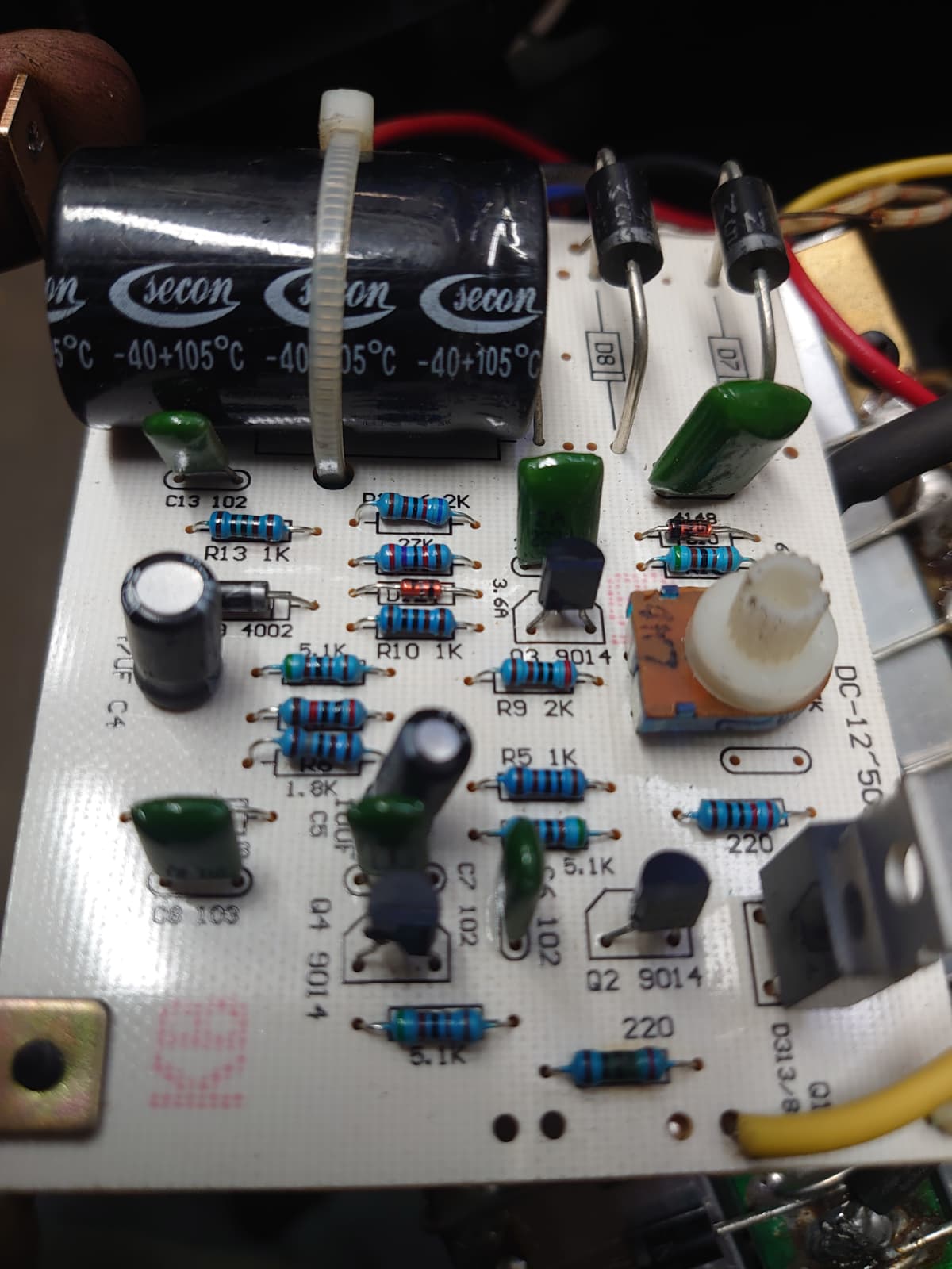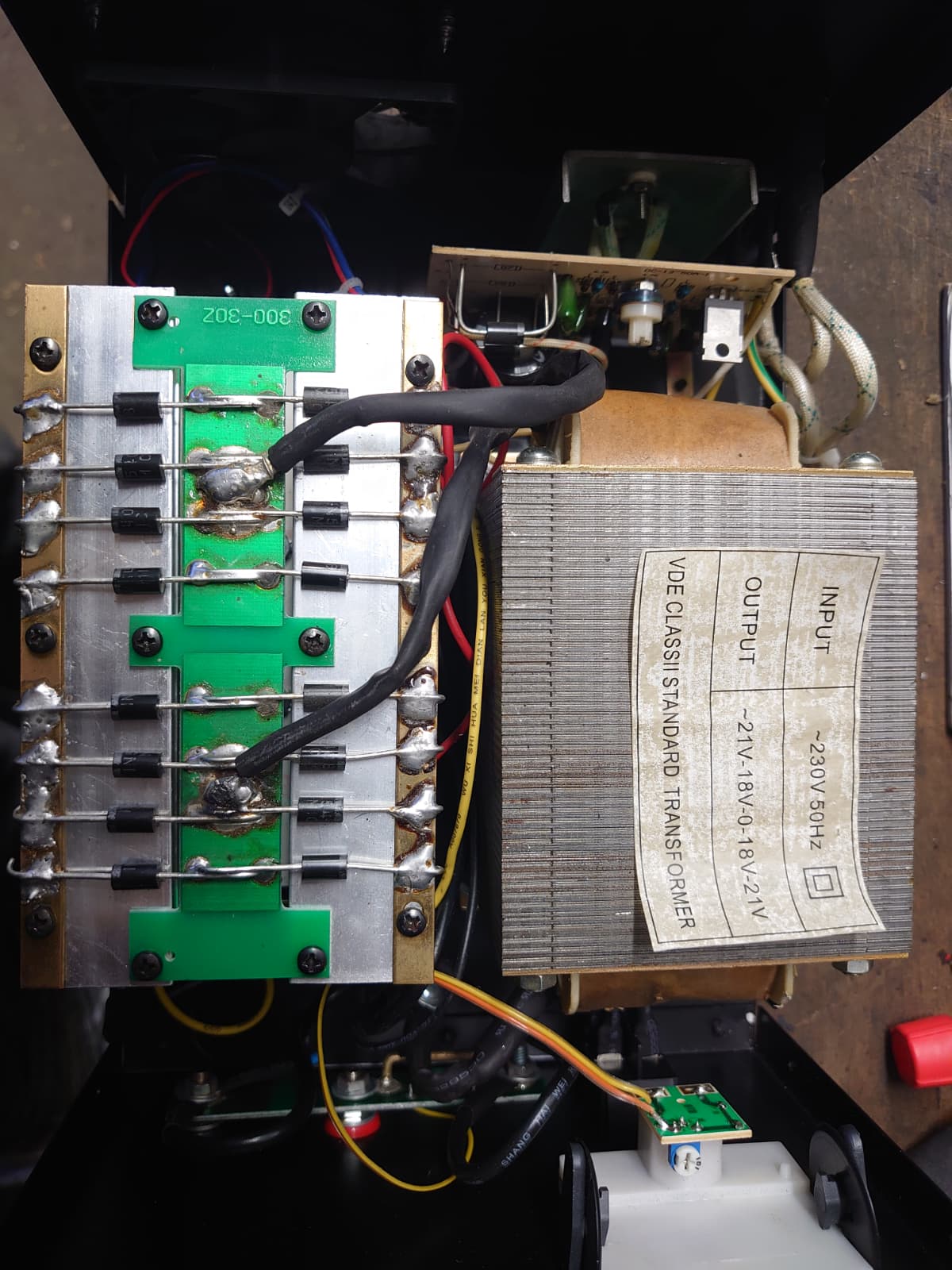 Hallo an die Forengemeinde, Ich habe zwei Netzteile von Voltcraft (13,8V und 30A) bekommen, beide mit demselben Fehler: Wenn ich die Netzteile einschalte passt die Spannung (13,6V) annähernd mit der Angabe zusammen, nur wenn ich nur etwas Last dran hänge bricht die Spannung sofort zusammen auf 0V. Ich habe nun schon einige Bauteile überprüft und habe festgestellt, dass einige Elkos im Leistungsteil bei einem Netzgerät hinüber sind, beim anderen sind sie noch in Ordnung. Die Dioden sind laut Messgerät auch noch in Ordnung, auch die 2N3055. Jetzt weiß ich nicht wie ich weiter vorgehen soll, wie kann ich zweifelsfrei feststellen, dass der Fehler in der Steuerplatine liegt oder im Leistungsteil/den Transistoren vom Gleichrichter? Vielen Dank schonmal Sorry, in der ersten Version habe ich einen Betrag erstellt, hab dann aber vor dem Abschicken mein Handy noch weggelegt und dieses hatte sich dann selbstständig gemacht.