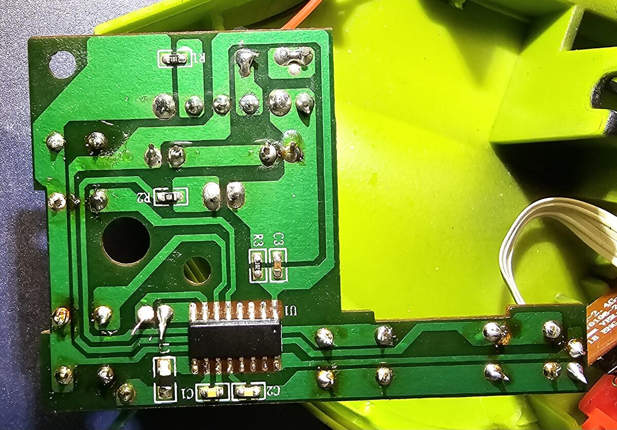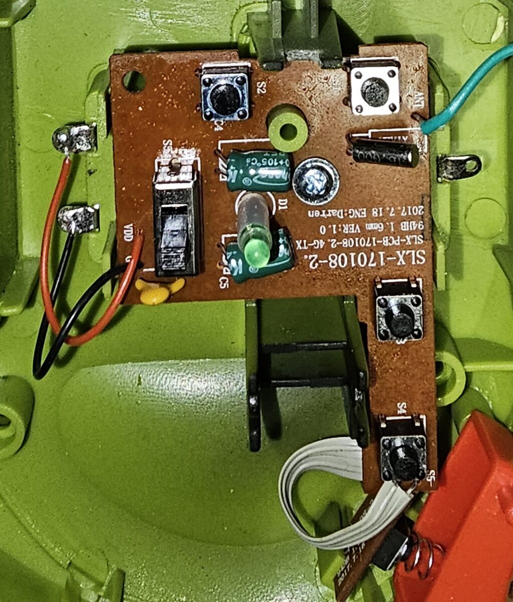 Hallo, der RC Traktor von meinem Sohn fährt nicht mehr richtig. Es ist ein günstiges Modell. Grundsätzlich kann man die Fahrgeschwindigkeit nicht regeln; er kann nur fahren oder nicht. Die Lenkung funktioniert ohne Probleme. Manchmal fährt der Traktor nach ein paar Sekunden los, wenn man den Steuerungshebel in Fahrtrichtung belässt. Den Traktor habe ich soweit zerlegt, dass der Motor nicht mehr im Getriebe ist. Der Motor dreht sich leicht und das Getriebe würde sich auch leicht drehen. Als Anhand die Platine. Evlt. kann man sehen, was hierfür verantwortlich sein könnte. Kalte Lötstelle ist mir nicht aufgefallen. Auf dem einen Bild habe ich die Anschlüsse der Motoren markiert. rot=Motor für die Lenkung gelb=Motor zum Fahren Vielen Dank Grüße Rubby