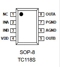 Habe jetzt mal an den TC118S (siehe Bild) gemessen: (erste Wert bedeutet im Leerlauf, zweite rückwärts, dritte vorwärts) vorwärts/rückwärts AGND -> INB -> 2,8mV -> 3,9V -> 0,4 mV AGND -> INA -> 2,8mV -> 0,9mV -> 3,6V PGND -> INB -> 2,8mV -> 3,9V -> 0,4 mV PGND -> INA -> 2,8mV -> 0,9mV -> 3,6V (erste Wert bedeutet im Leerlauf, zweite links, dritte rechs) links/rechts AGND -> INB -> 2,8mV -> 3,4V -> 4 mV AGND -> INA -> 2,8mV -> 4mV -> 3,4V PGND -> INB -> 2,8mV -> 3,4V -> 4 mV PGND -> INA -> 2,7mV -> 3mV -> 3,4V Die zweiten und dritten Werte haben sich nur geändert, wenn auch der Motor angeloffen ist, auch wenn die Fernbedienung schon vorher gedrückt wurde. Es dauert halt immer ein paar Sekunden, bis sich etwas tut. Mir ist noch aufgefallen, dass es leise klackert wenn sich der Motor nicht dreht. Als wie wenn zu wenig Kraft da wäre. Soll ich trotzdem mit den Oszilloskop noch etwas messen? Der andere größere Chip hat leider keine Aufschrift.
