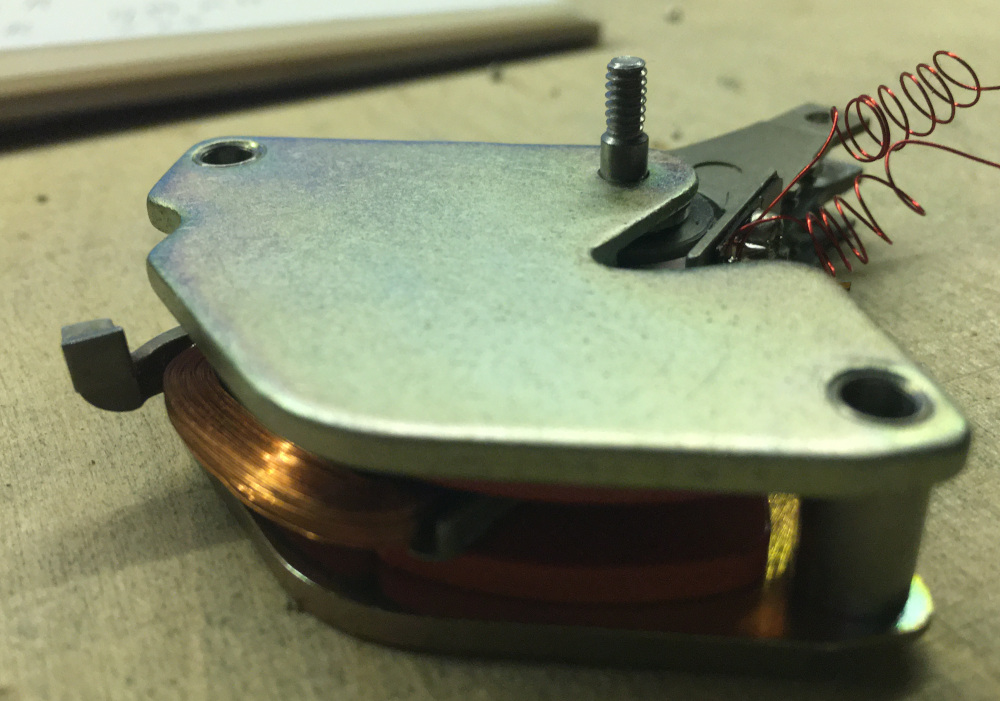 ein Stückchen ferromagnetisches Metall ankleben und eine Spule nahe