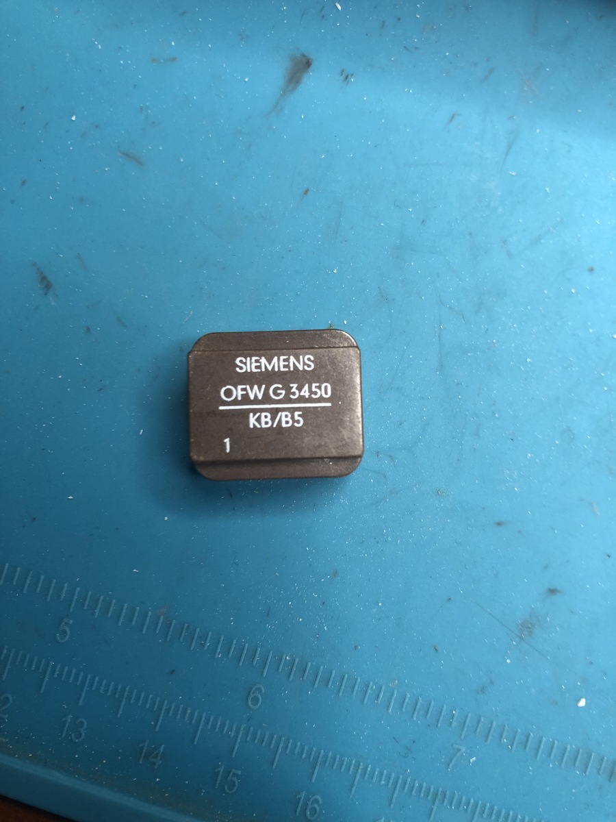 Das ist ein Oberflächenwellen-Filter, vermutlich aus einer alten TV-ZF Baugruppe. Bei diesen Filtern kann man durch die Struktur recht genau die Durchlasskurve bauen, die man benötigt. TV-ZF bei etwa 38MHz erforderte aufwendige Spulenkonstruktionen, die man später durch diese Filter ersetzen konnte. Heute nahezu unbrauchbar, weil analoge (AM) Empfänger nicht mehr benötigt werden. https://de.wikipedia.org/wiki/Akustische-Oberfl%C3%A4chenwellen-Filter