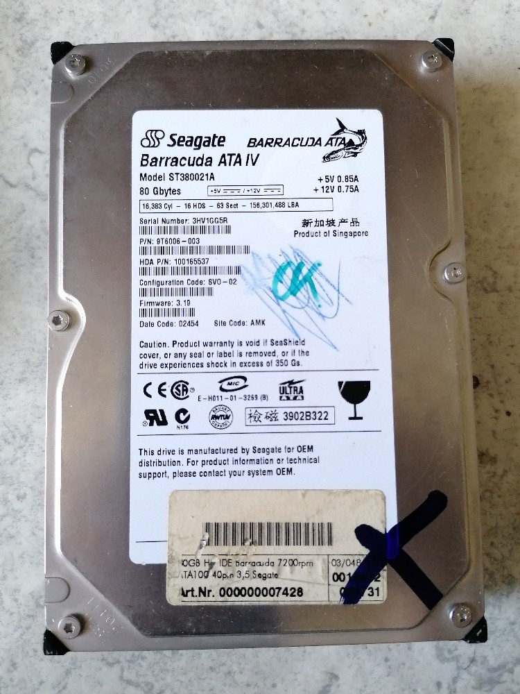Christoph E. schrieb: > Die brauchbaren Modelle sind: > * Seagate Barracuda ATA Modell ST380021A, 80 GB > * Western Digital WD Caviar 307AA, 30.7 GB > > Jetzt baue ich das Ganze nur noch in einen Schuhkarton ein und verblüffe > Kinder/Jugendliche damit ;-) Falscher Ansatz: Du brauchst eine RA81 von DEC, 456MB, 14-Zoll Platten, 75kg Masse, 644Watt Leistungsaufnahme, 3600rpm. Kinder/Jugendliche koennen das Ding nicht bewegen, Problem geloest. Ein Photo von dem Ding: https://gunkies.org/wiki/File:Ra81.jpg Und ein aufgeschnittene Version: https://www.pdp-11.nl/peripherals/disk/ra81-info.html