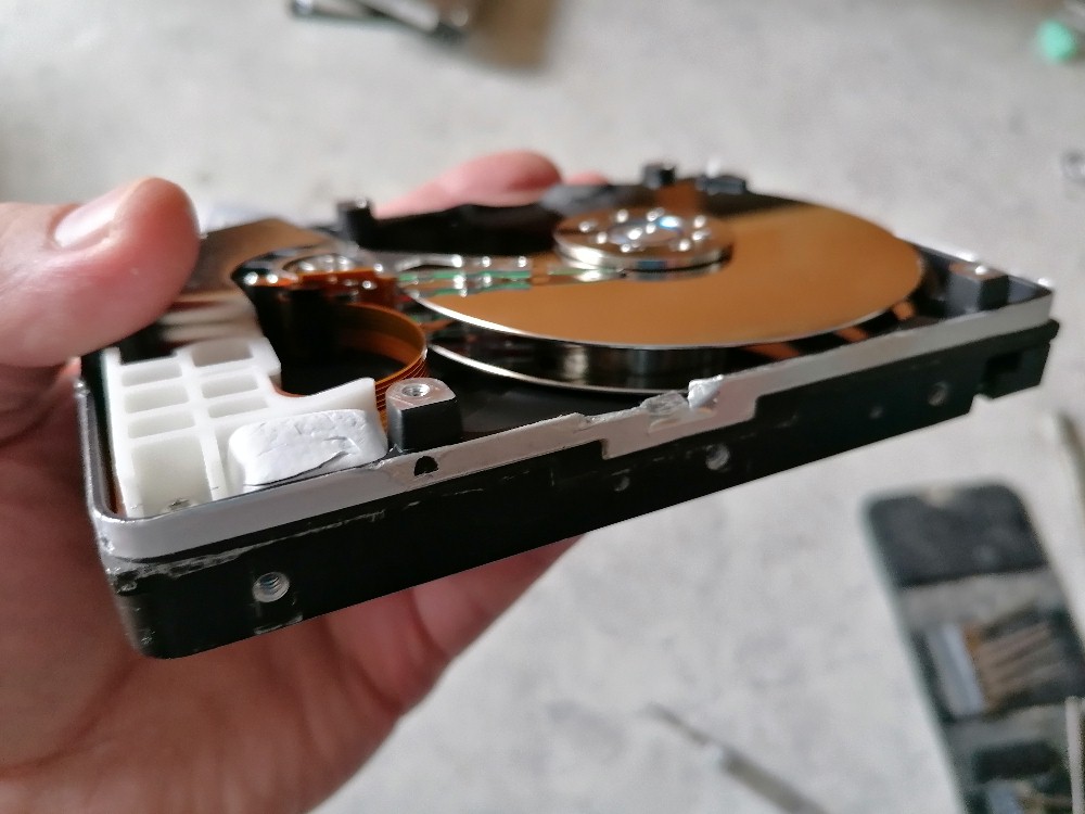 Im unmodifizierten Zustand schien meine Festplatte auch dauerhaft zu laufen, soweit ich das rückblickend beurteilen kann. Habe sie aber auch nicht soooo lange unmodifiziert betrieben. Von daher kann ich es nicht sicher sagen. Das Problem dürfte zum Beispiel der Ausbau der Leseköpfe sein. Den muss ich aber unbedingt machen, um mehr Scheiben einbauen zu können...